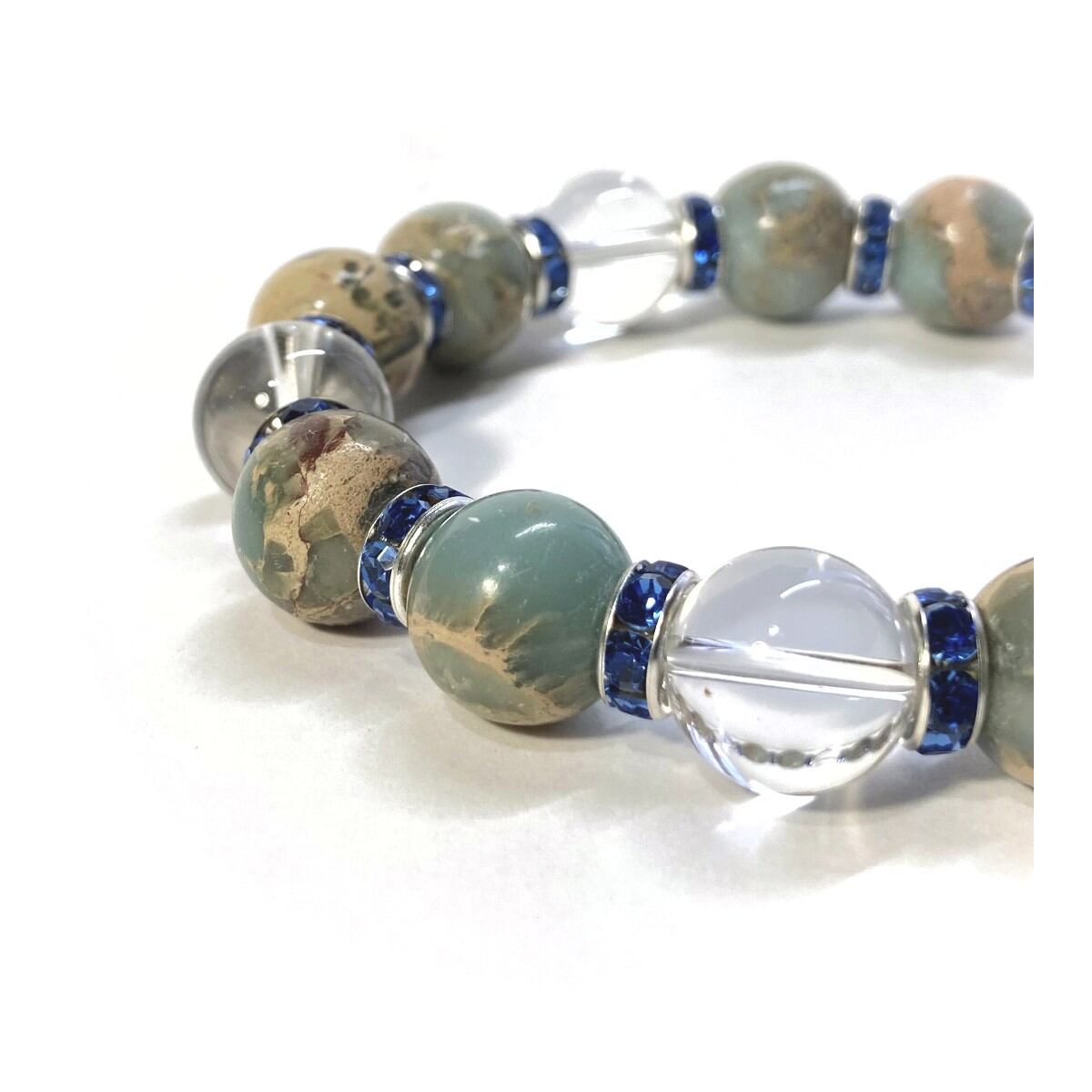 インプレッションストーン&水晶 パワーストーン ブレスレット 12mm(ブルー)メンズ・レディース 男性・女性 数珠ブレス 開運 ☆