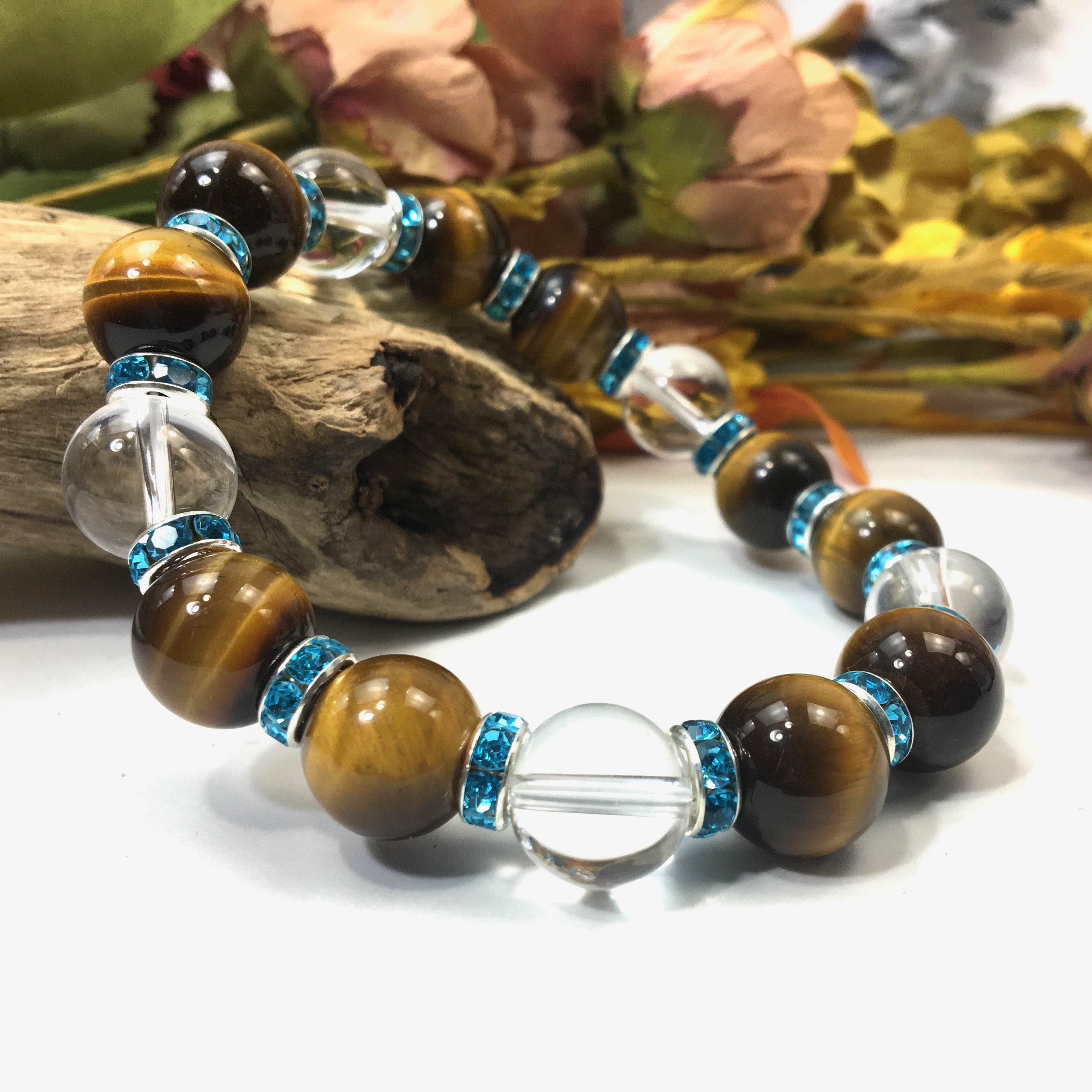 タイガーアイ&水晶 パワーストーン ブレスレット 天然石 12mm (ライトブルー)メンズ・レディース 男性・女性 数珠ブレス 開運 ☆