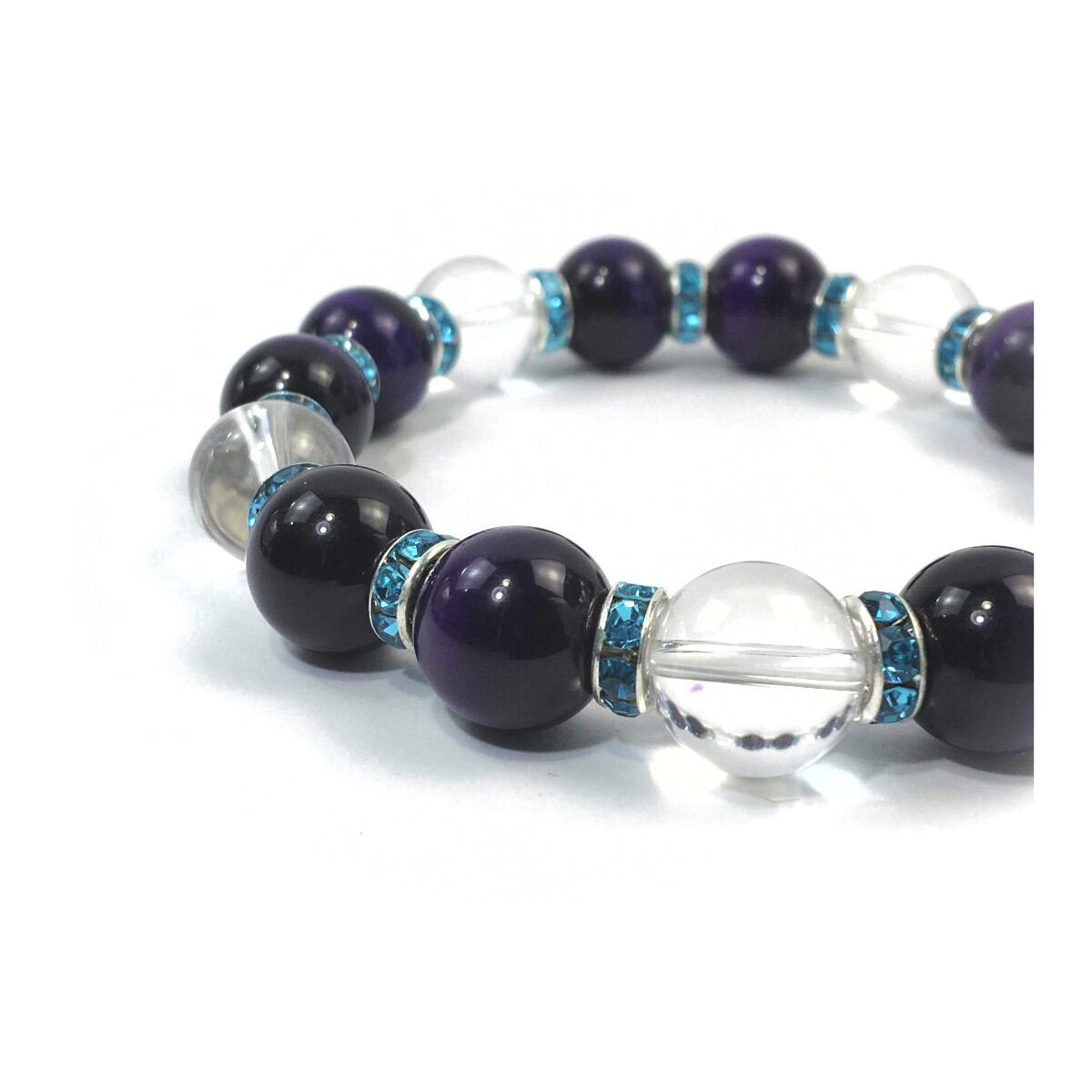 パープルタイガーアイ&水晶 パワーストーン ブレスレット 12mm (ライトブルー)メンズ・レディース 男性・女性 数珠ブレス 開運 ☆