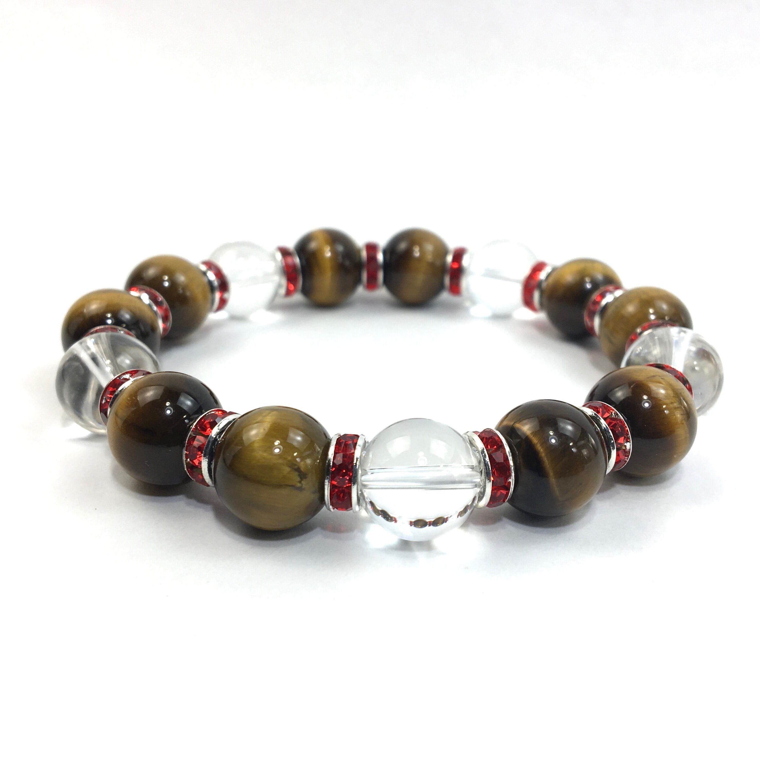タイガーアイ&水晶 パワーストーン ブレスレット 天然石 12mm (レッド)メンズ・レディース 男性・女性 数珠ブレス 開運 ☆