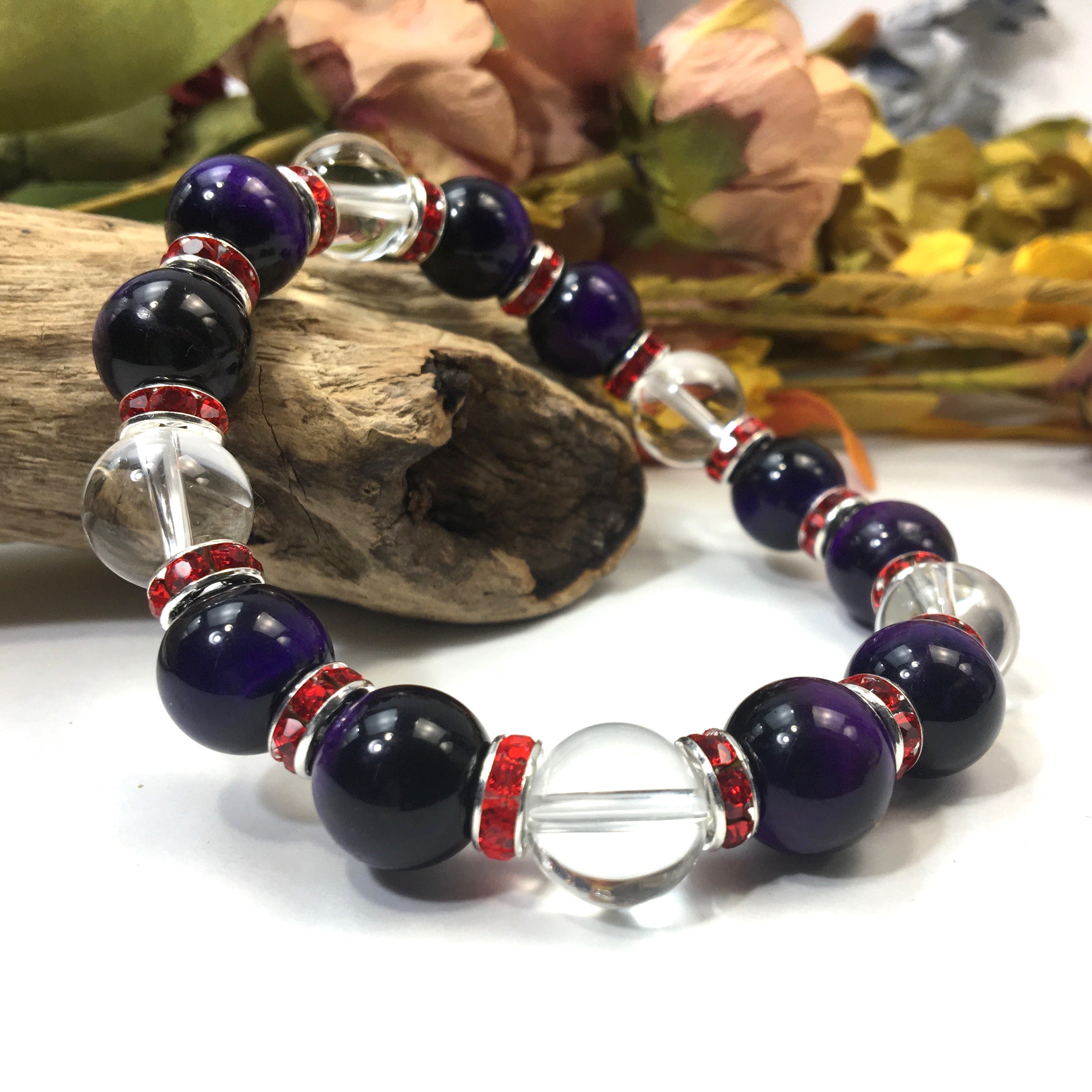 パープルタイガーアイ&水晶 パワーストーン ブレスレット 12mm (レッド)メンズ・レディース 男性・女性 数珠ブレス 開運 ☆