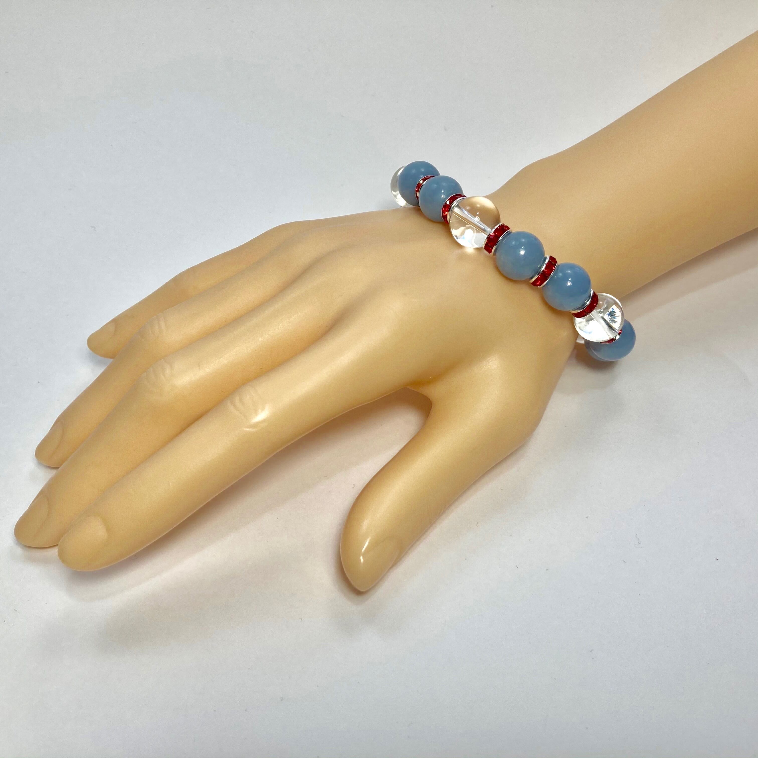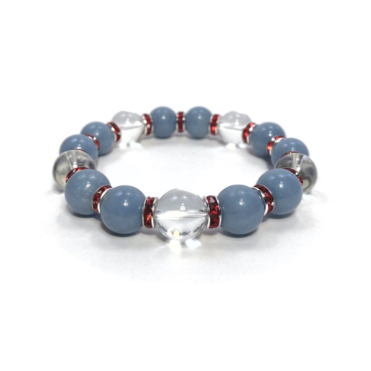 エンジェライト&水晶 パワーストーン ブレスレット 天然石 12mm (レッド)メンズ・レディース 男性・女性 数珠ブレス 開運 ☆