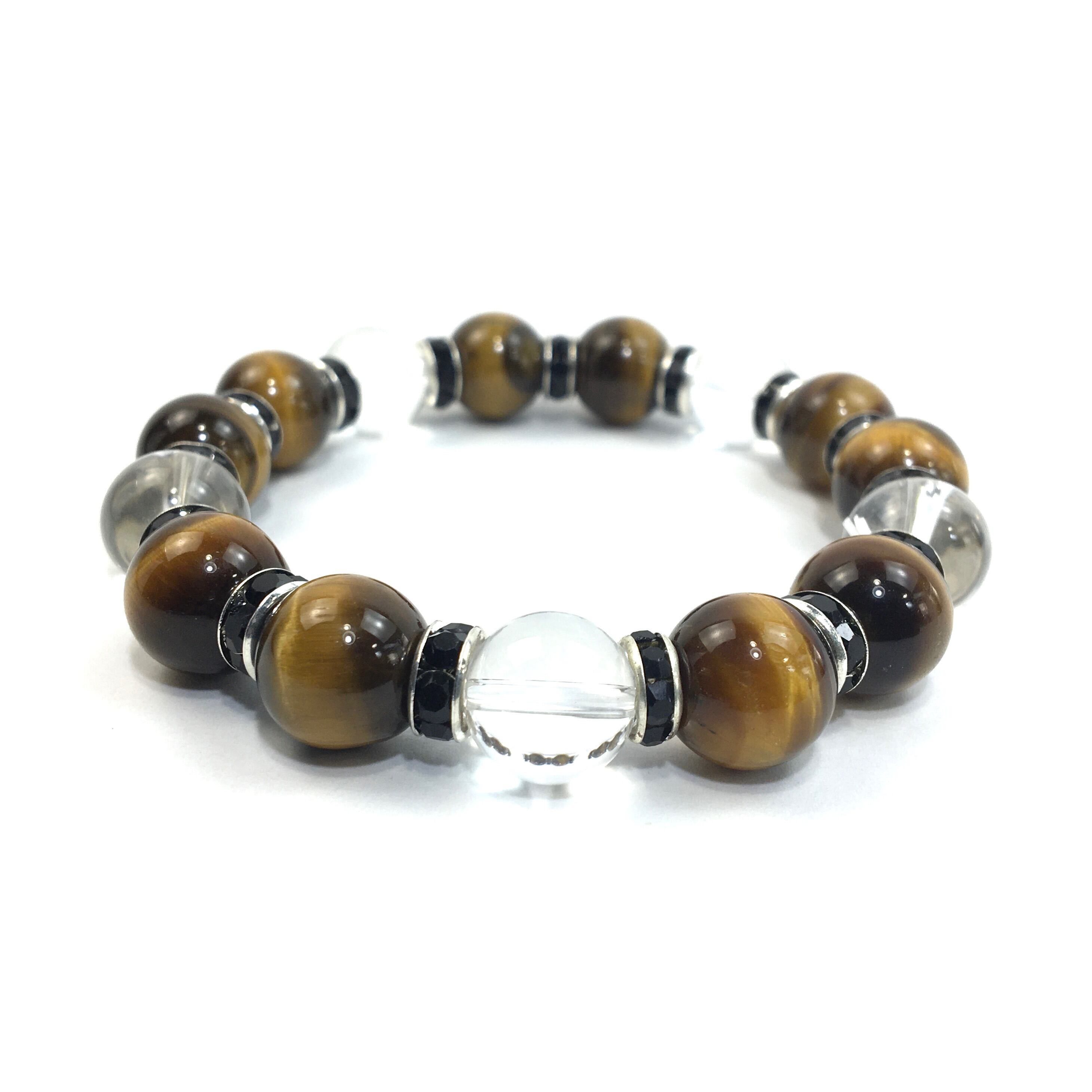 タイガーアイ&水晶 パワーストーン ブレスレット 天然石 12mm (ブラック)メンズ・レディース 男性・女性 数珠ブレス 開運 ☆