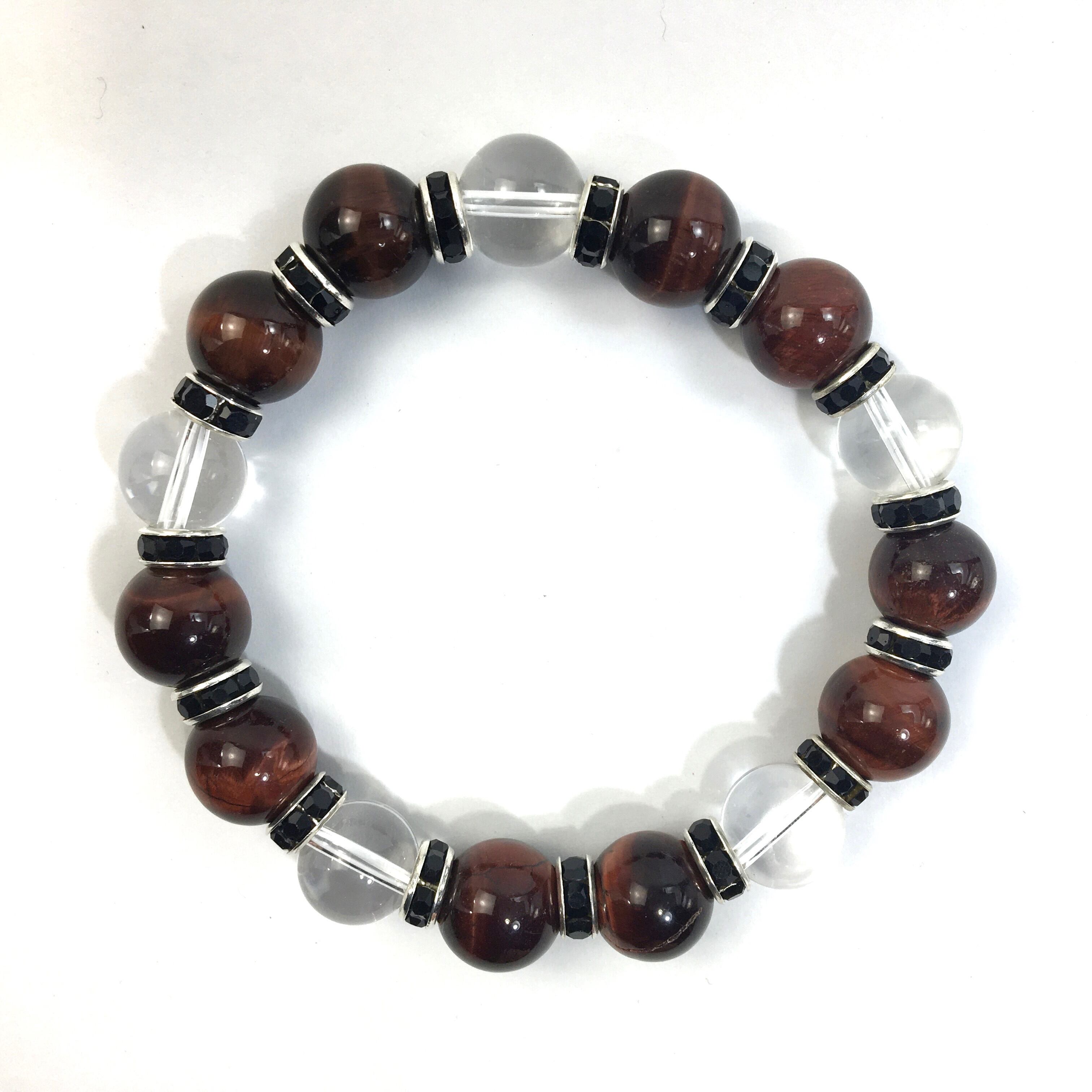 レッドタイガーアイ&水晶 パワーストーン ブレスレット 12mm (ブラック)メンズ・レディース 男性・女性 数珠ブレス 開運 ☆