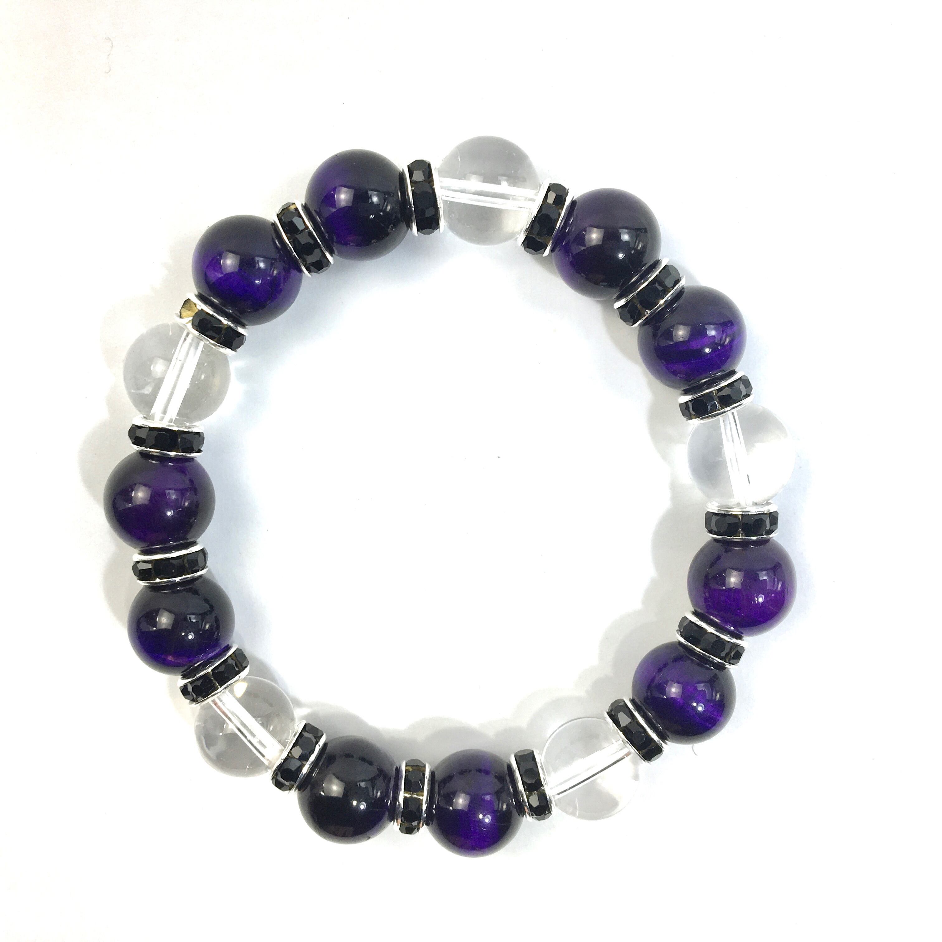 パープルタイガーアイ&水晶 パワーストーン ブレスレット 12mm (ブラック)メンズ・レディース 男性・女性 数珠ブレス 開運 ☆