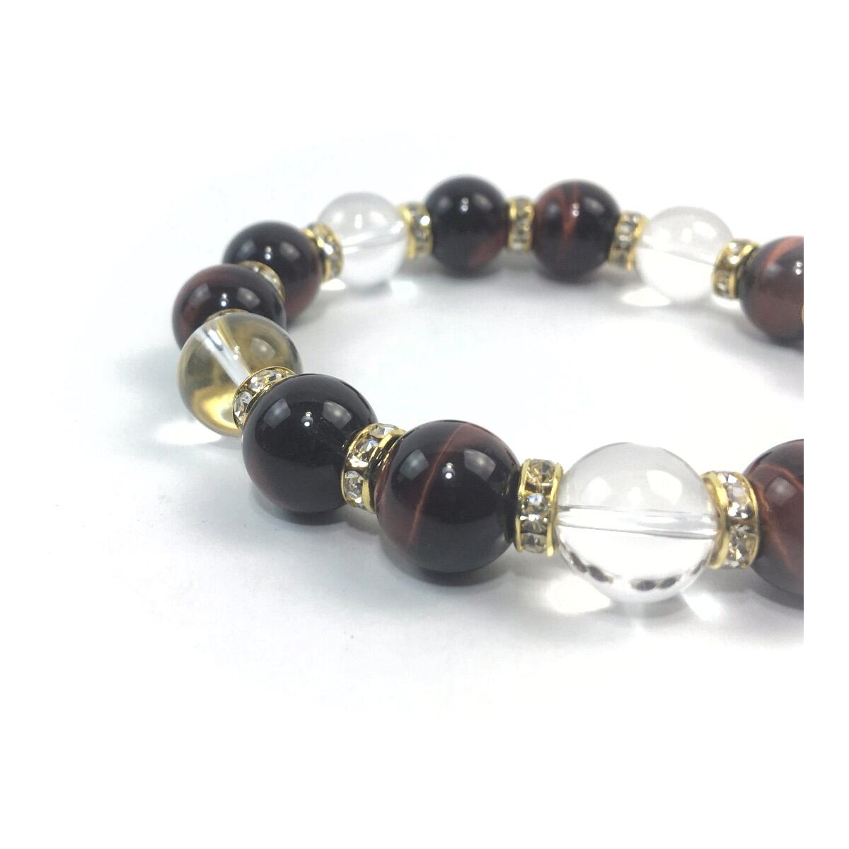 レッドタイガーアイ&水晶 パワーストーン ブレスレット 12mm (ゴールド)メンズ・レディース 男性・女性 数珠ブレス 開運 ☆