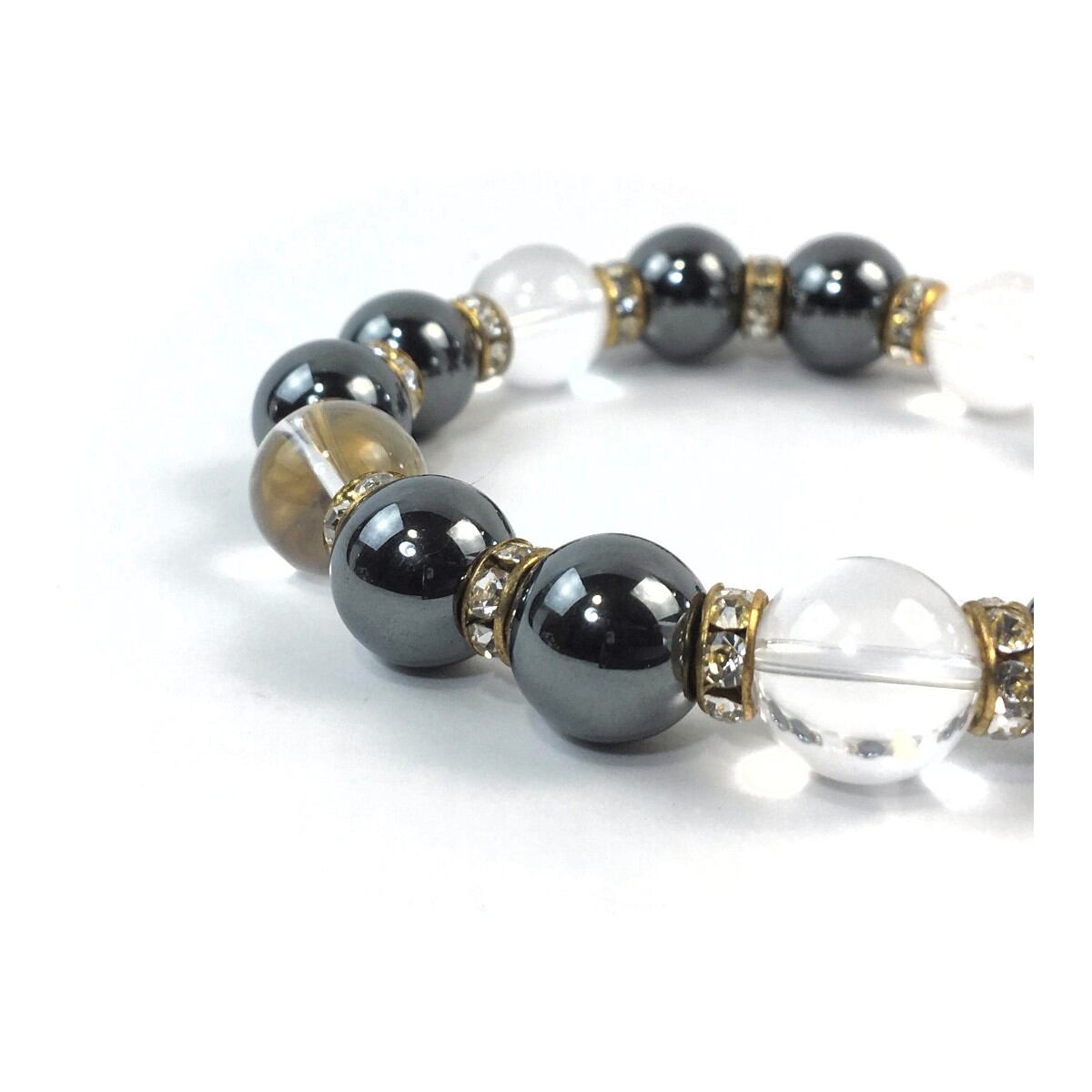 ヘマタイト&水晶 パワーストーン ブレスレット 天然石 12mm (ゴールド)メンズ・レディース 男性・女性 数珠ブレス 開運 ☆