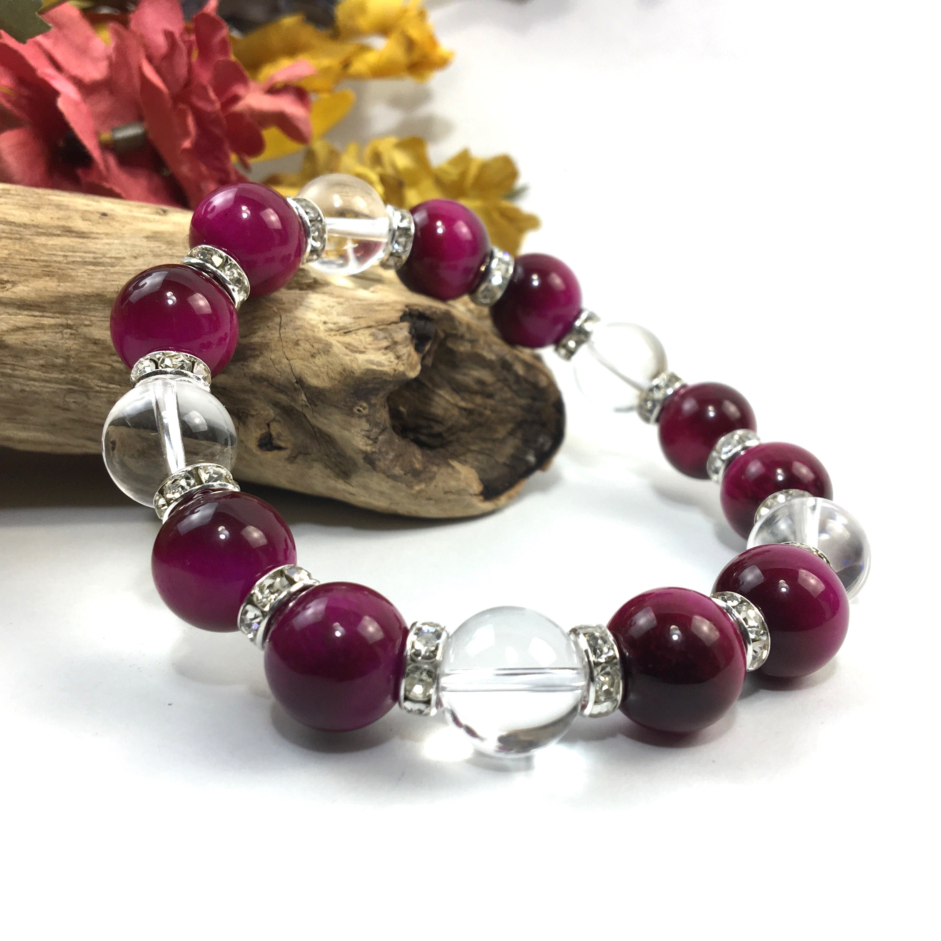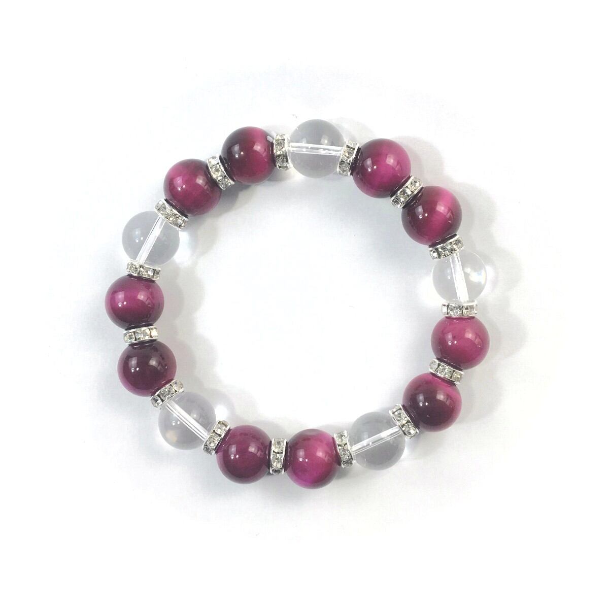 ピンクタイガーアイ&水晶 パワーストーン ブレスレット 12mm (シルバー)メンズ・レディース 男性・女性 数珠ブレス 開運 ☆