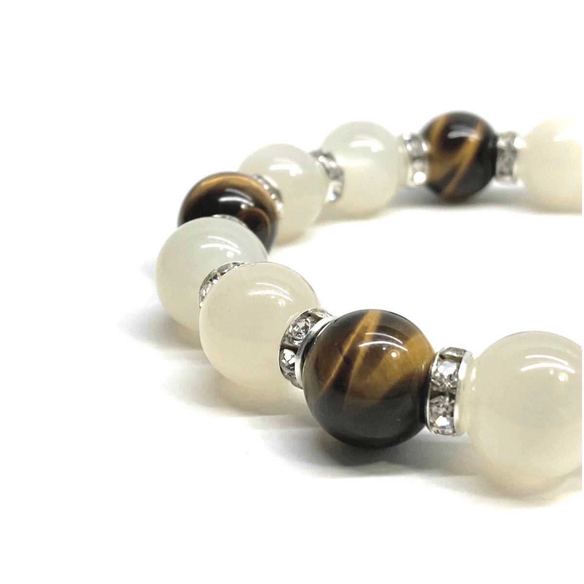 ムーンストーン&タイガーアイ パワーストーン ブレスレット 天然石ブレス (シルバー) 12mm メンズ レディース 男性 女性 6月誕生石 恋愛運 恋人 夫婦円満 縁結び 数珠 ☆