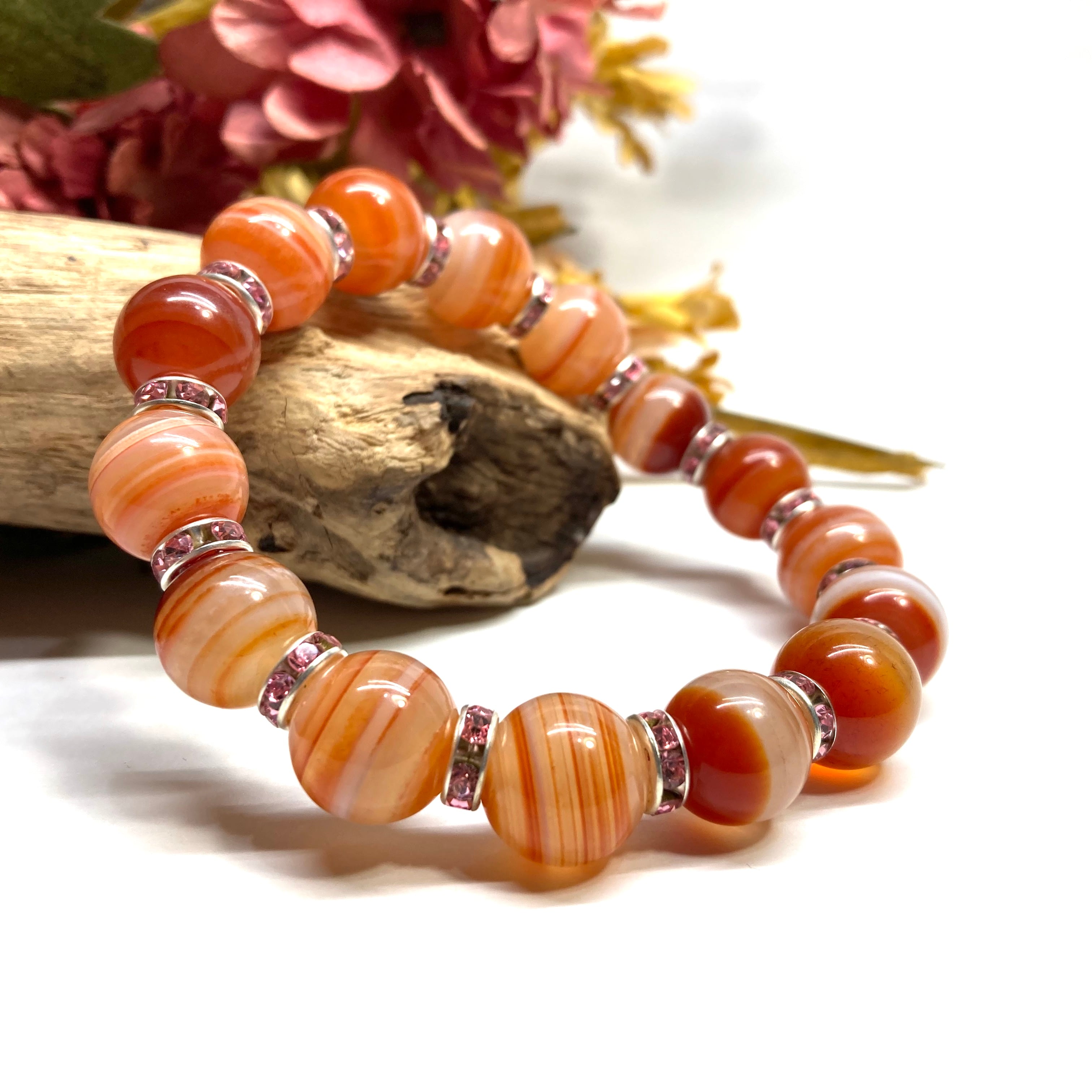 カーネリアン・サードニクス パワーストーン ブレスレット 12mm (ピンク)メンズ・レディース 男性・女性 数珠ブレス 開運 ☆