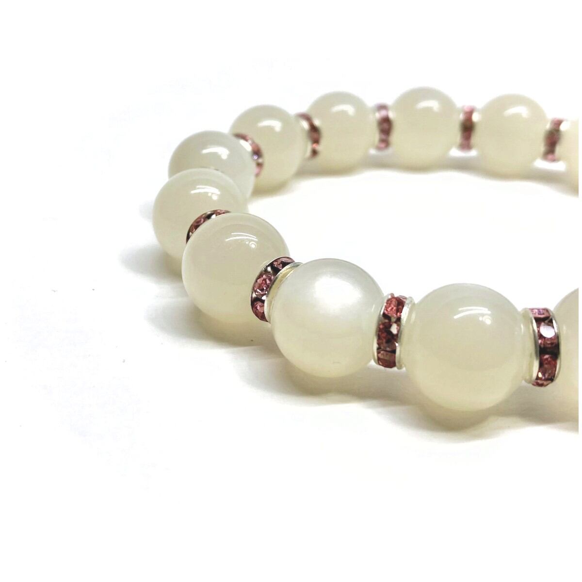 ムーンストーン パワーストーン ブレスレット 12mm 天然石ブレス (ピンク)メンズ・レディース 男性・女性 数珠ブレス 開運 ☆