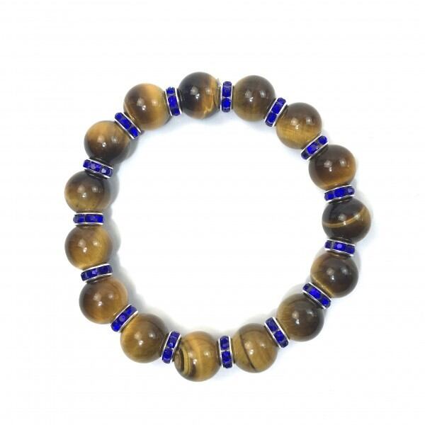 こちらは、12mm玉のタイガーアイを使用した天然石ブレスレットです。石との間にはロンデルを挟み高級感を演出しています。シンプルなデザインですのでどんなコーディネートとも合わせ易いブレスレットです。石大きさは12mm玉です。内周約18cmです。気になる方は是非この機会にどうぞ。