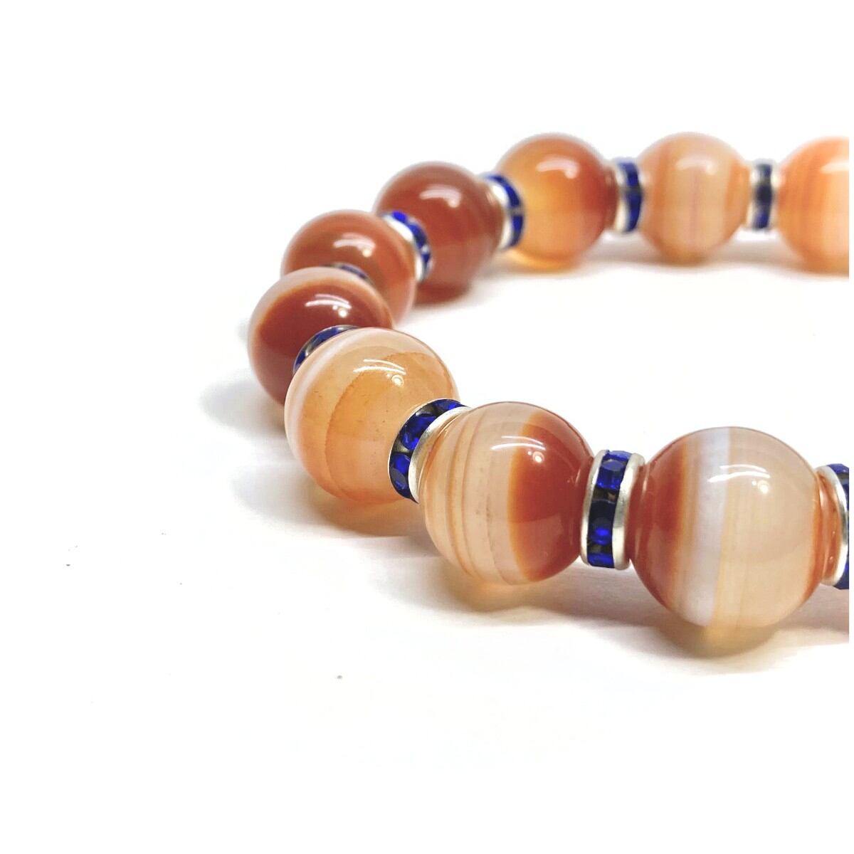 こちらは、12mm玉のカーネリアン・サードニクス(サードオニキス) を使用したパワーストーンブレスレットです。間にはロンデルを挟み高級感を演出しております。男女問わずどんなコーディネートとも合わせ易いブレスレットです。サイズは内周約18cmです。 数に限りがございますので気になる方はお早めにどうぞ。