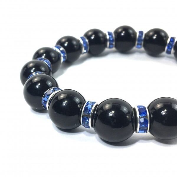 パワーストーン ブレスレット オニキス 12mm 天然石ブレス (ブルー)メンズ・レディース 男性・女性 数珠ブレス 開運 ☆