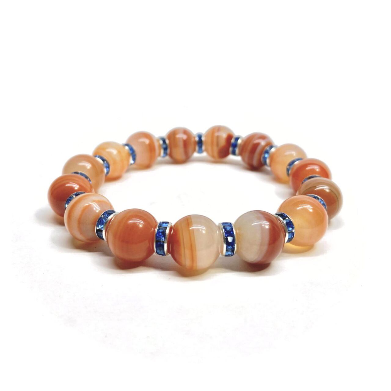 カーネリアン・サードニクス パワーストーン ブレスレット 12mm (ブルー)メンズ・レディース 男性・女性 数珠ブレス 開運 ☆