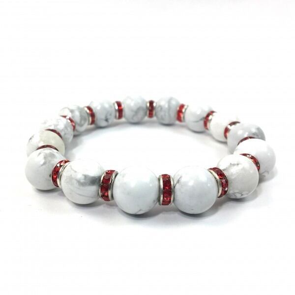 パワーストーン ブレスレット ハウライト 12mm 天然石ブレス (レッド)メンズ・レディース 男性・女性 数珠ブレス 開運 ☆