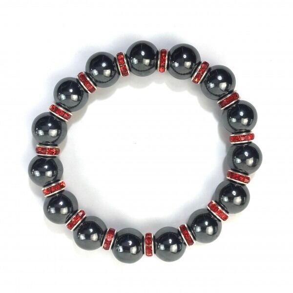 こちらは、12mm玉のヘマタイトを使用した天然石ブレスレットです。石との間にはロンデルを挟み高級感を演出しています。シンプルなデザインですのでどんなコーディネートとも合わせ易いブレスレットです。石大きさは12mm玉です。。内周約18cmです。気になる方は是非この機会にどうぞ。