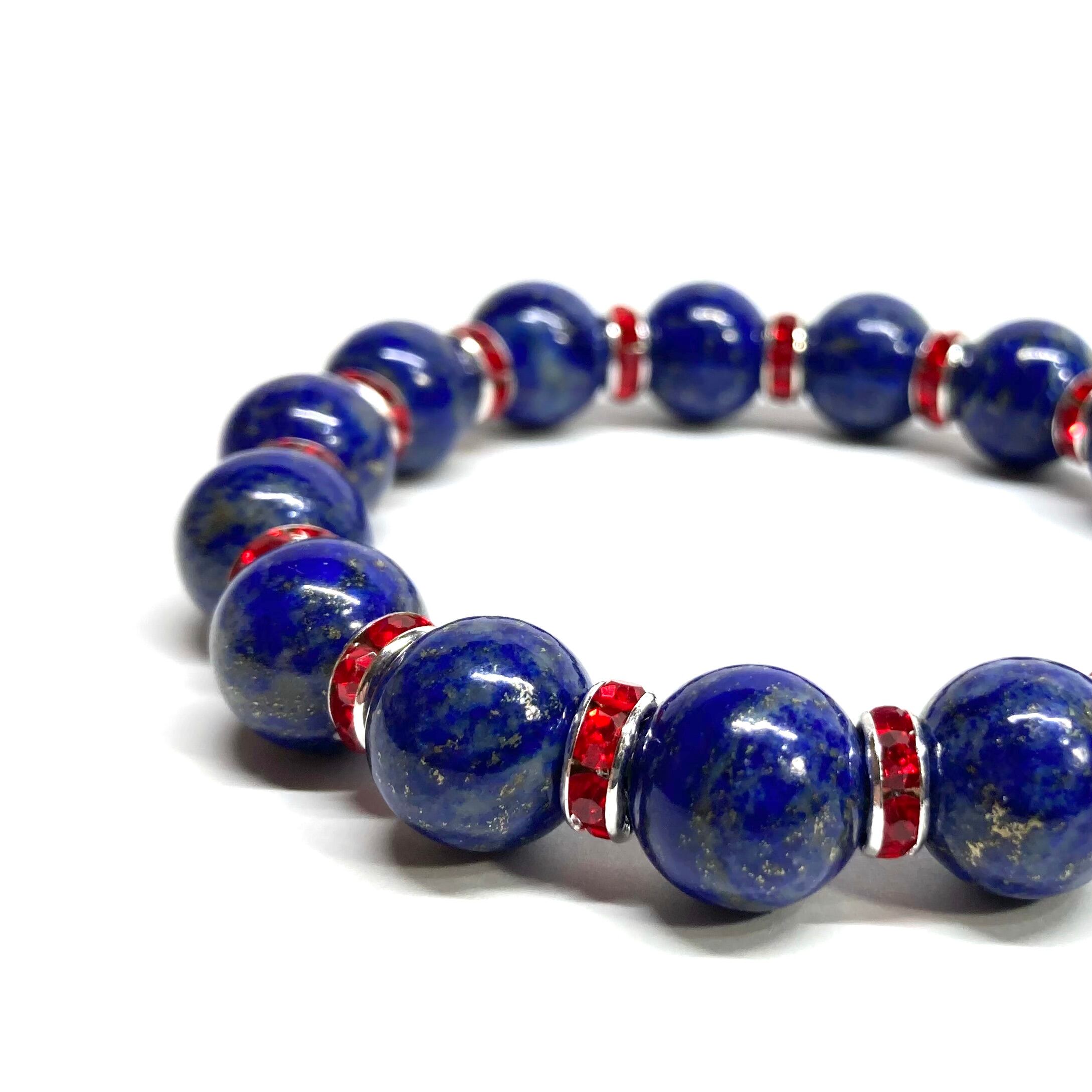 ラピスラズリ パワーストーン ブレスレット 12mm 天然石ブレス (レッド)メンズ・レディース 男性・女性 数珠ブレス 開運 ☆