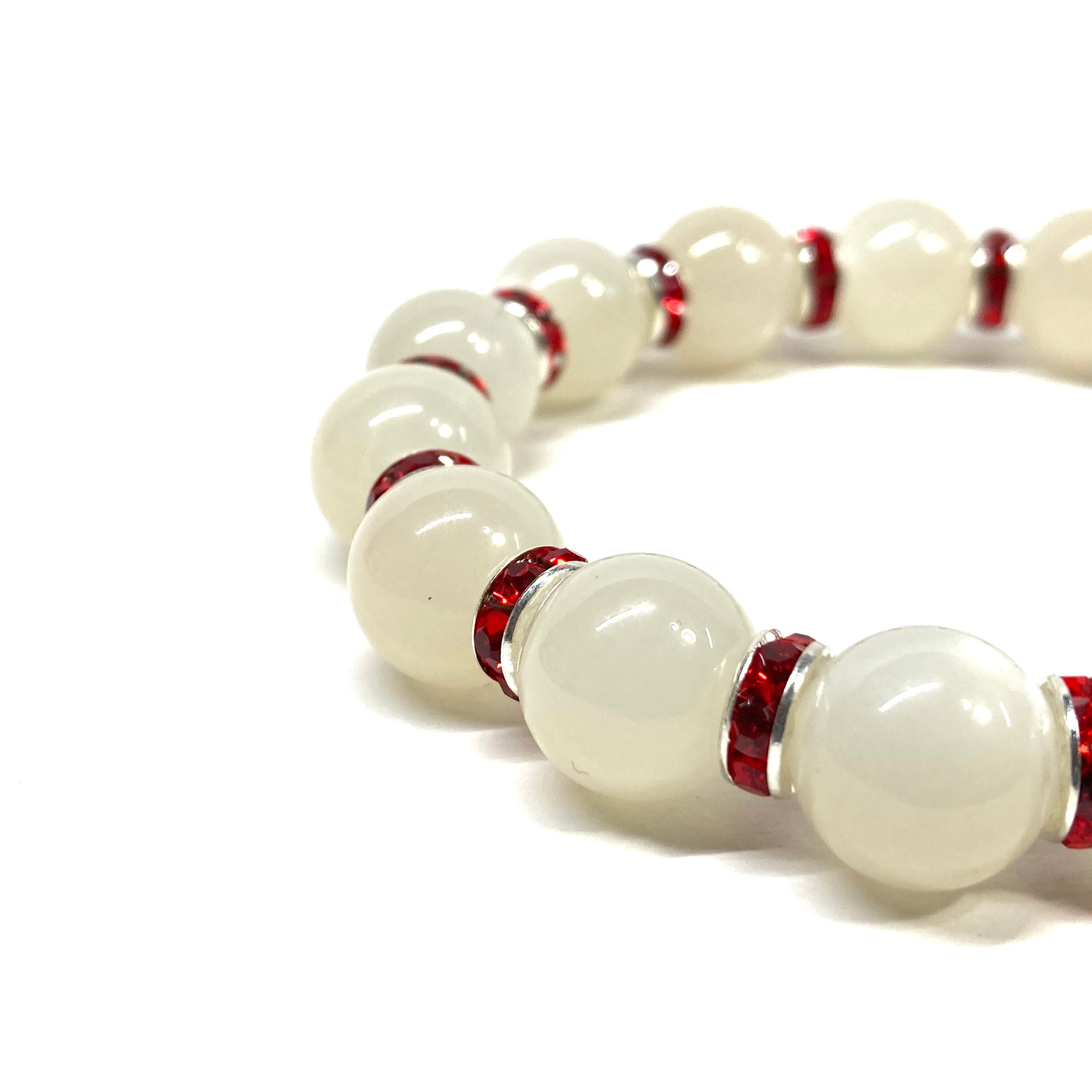 ムーンストーン パワーストーン ブレスレット 12mm 天然石ブレス (レッド)メンズ・レディース 男性・女性 数珠ブレス 開運 ☆