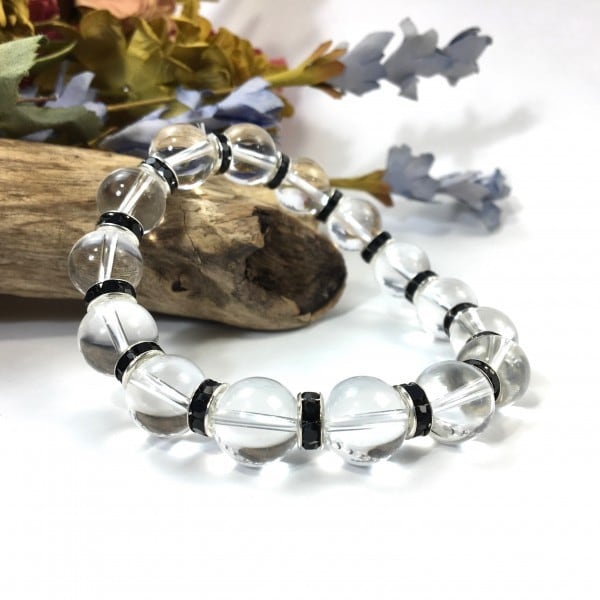 パワーストーン ブレスレット 水晶 12mm 天然石ブレス (ブラック)メンズ・レディース 男性・女性 数珠ブレス 開運 ☆
