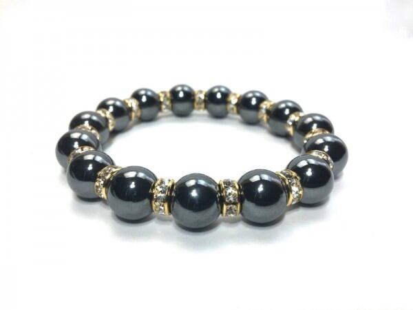 こちらは、12mm玉のヘマタイトを使用した天然石ブレスレットです。石との間にはロンデルを挟み高級感を演出しています。シンプルなデザインですのでどんなコーディネートとも合わせ易いブレスレットです。石大きさは12mm玉です。。内周約18cmです。気になる方は是非この機会にどうぞ。