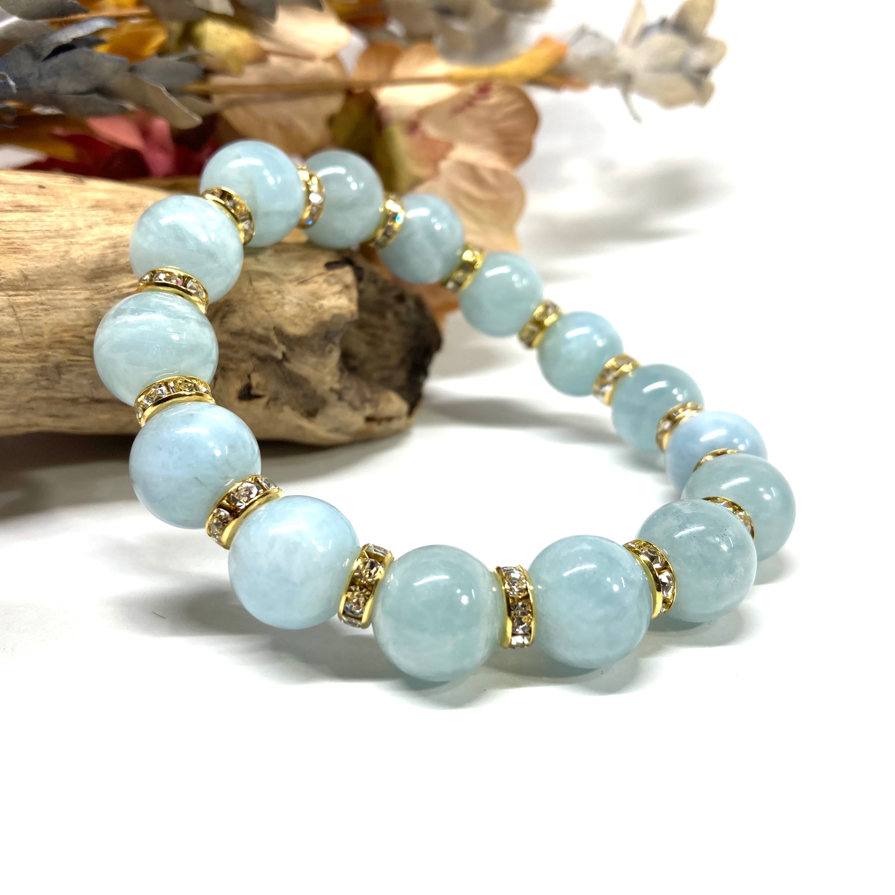 アクアマリン パワーストーン ブレスレット 12mm 天然石ブレス (ゴールド)メンズ・レディース 男性・女性 数珠ブレス 開運 ☆