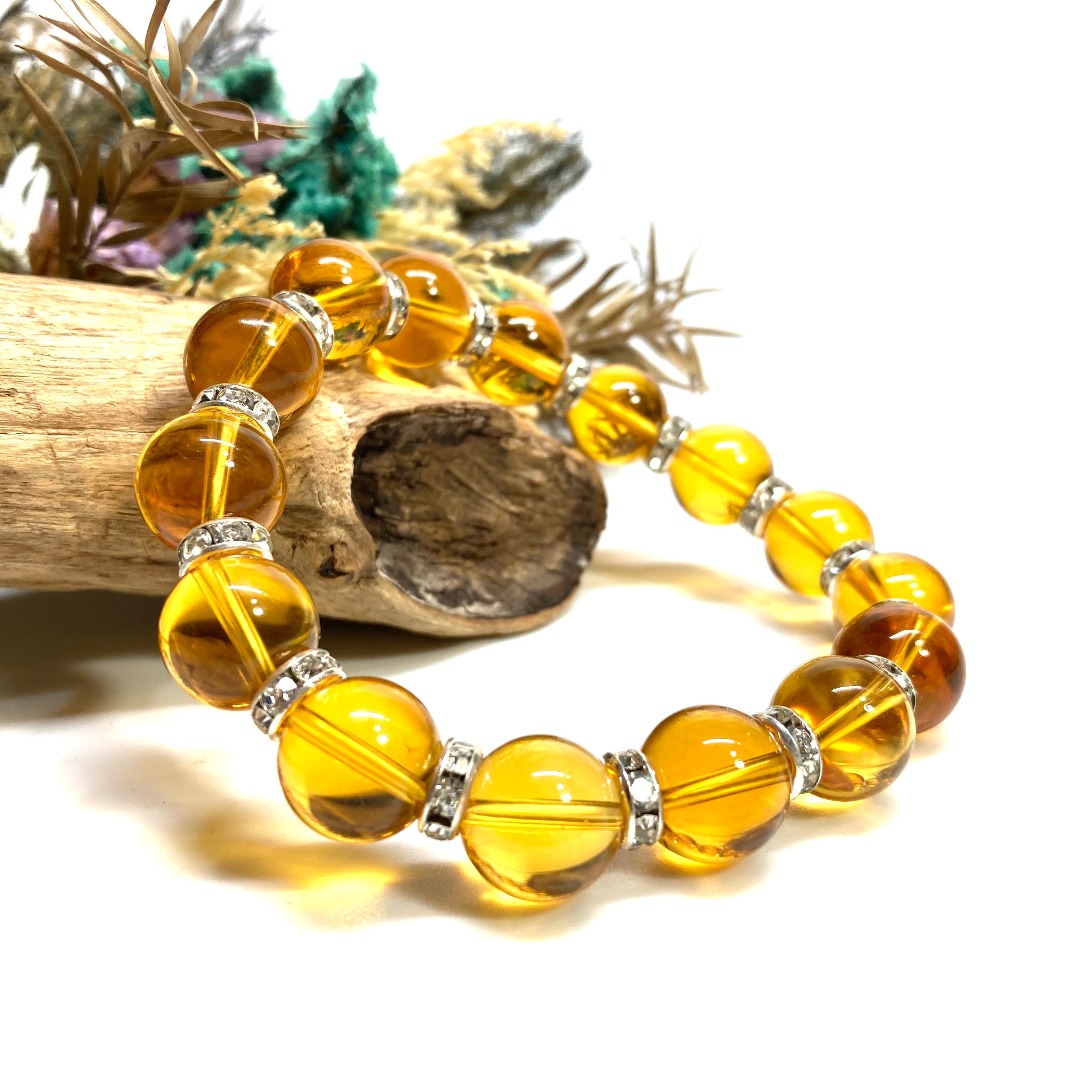 シトリン パワーストーン ブレスレット 12mm (シルバー) 数珠ブレス メンズ・レディース 男性 女性 幸運 開運 浄化 金運 ☆