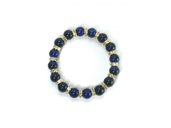 こちらは、ブルータイガーアイとオニキスを組み合わせたブレスレットです。間にはロンデルを挟み高級感あるデザインに仕上がっています。石大きさは腕にも馴染みやすいように10mm玉で内周約16cm(伸可能)です。数に限りがございますので気になる方はお早めにどうぞ。
