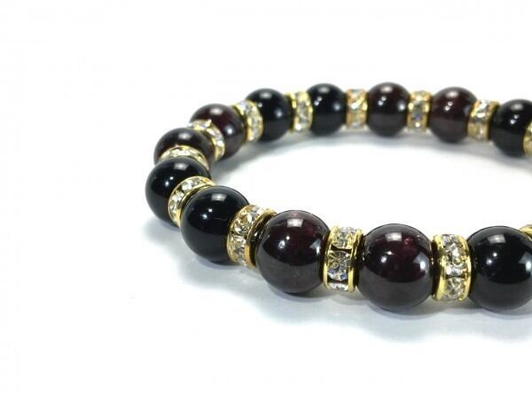 こちらは、ガーネットとオニキスを組み合わせたブレスレットです。間にはロンデルを挟み高級感あるデザインに仕上がっています。石大きさは腕にも馴染みやすいように10mm玉で内周約16cm(伸可能)です。数に限りがございますので気になる方はお早めにどうぞ。