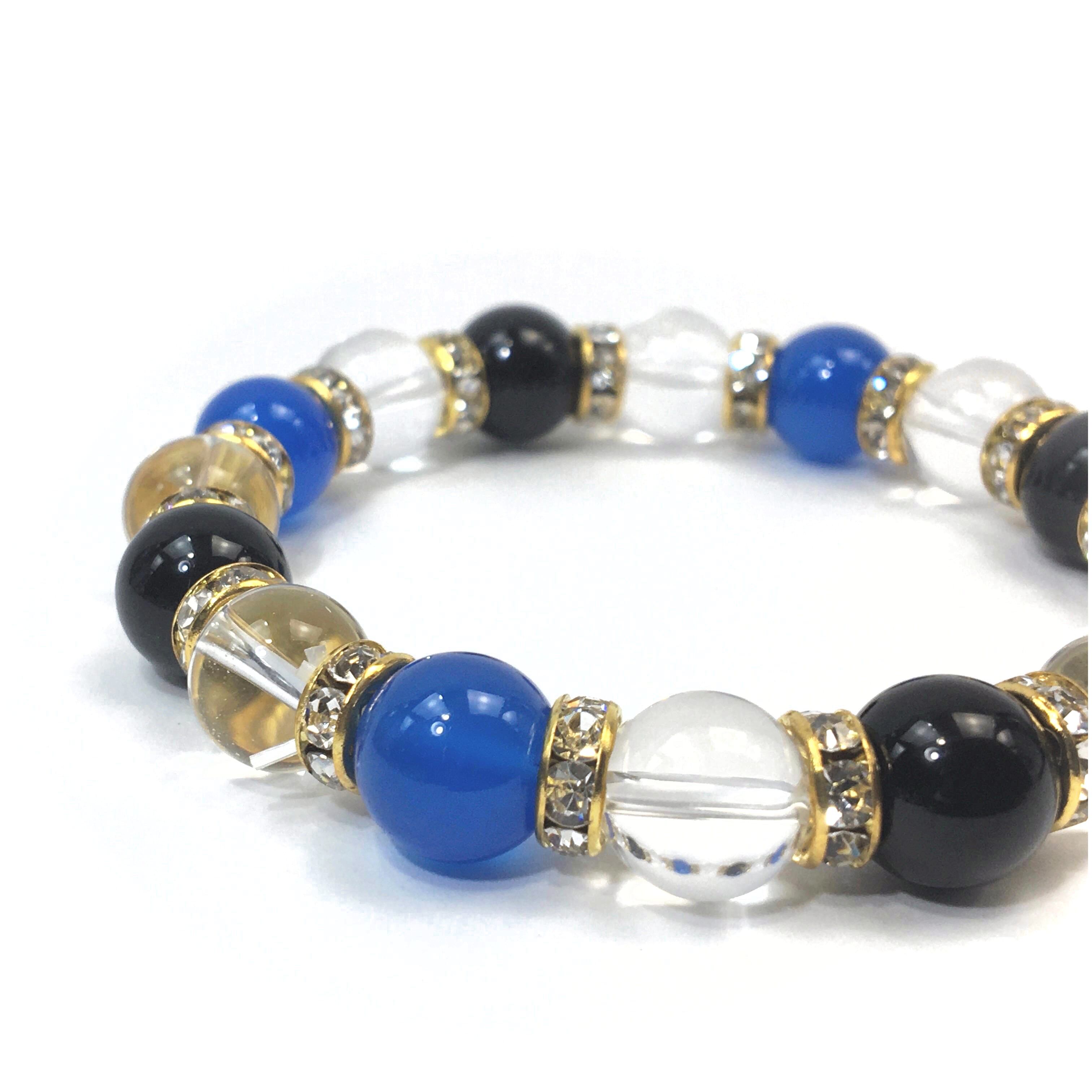 ブルーメノウ×水晶×オニキス パワーストーン ブレスレット 10mm(ゴールド)メンズ・レディース 男性・女性 数珠ブレス 開運 ☆
