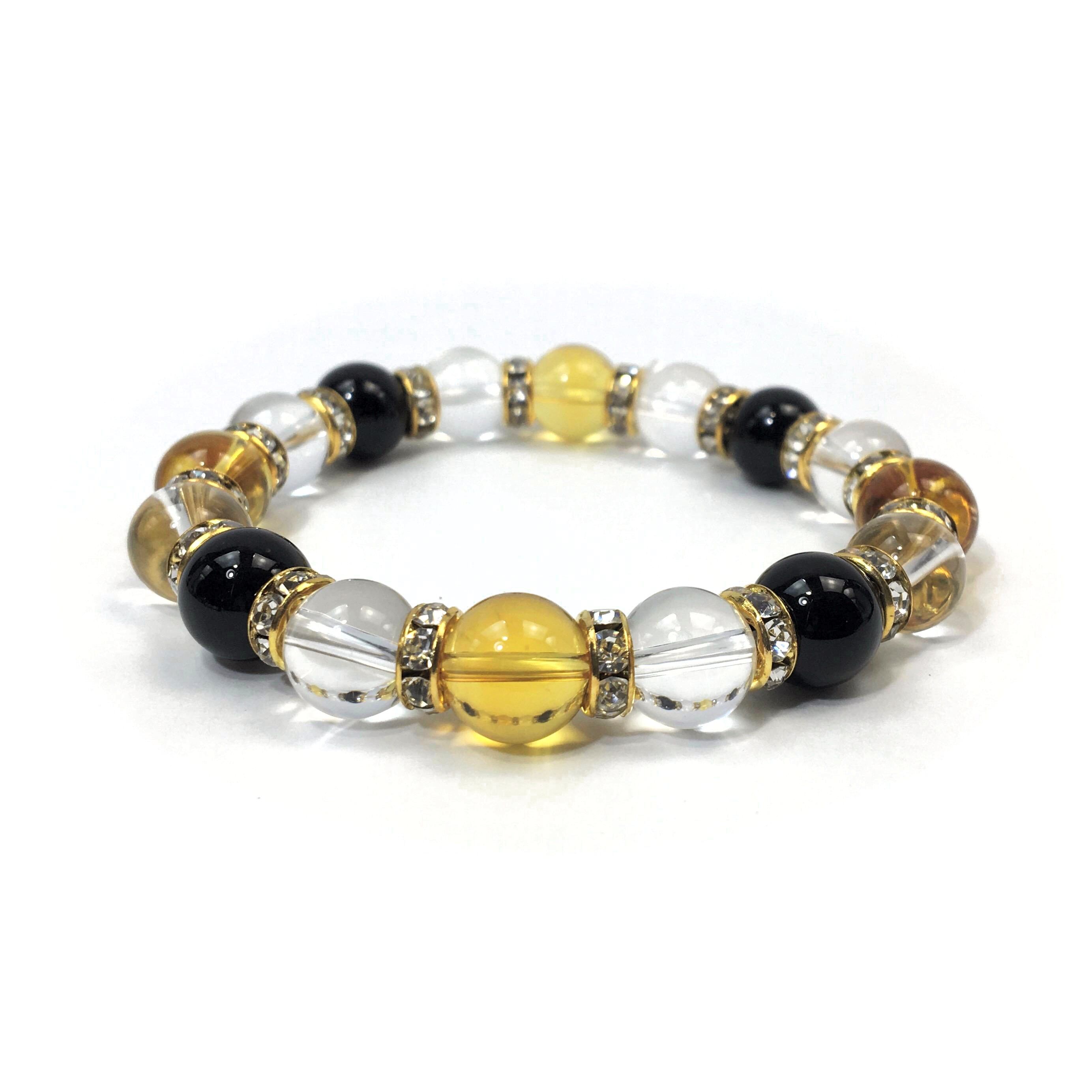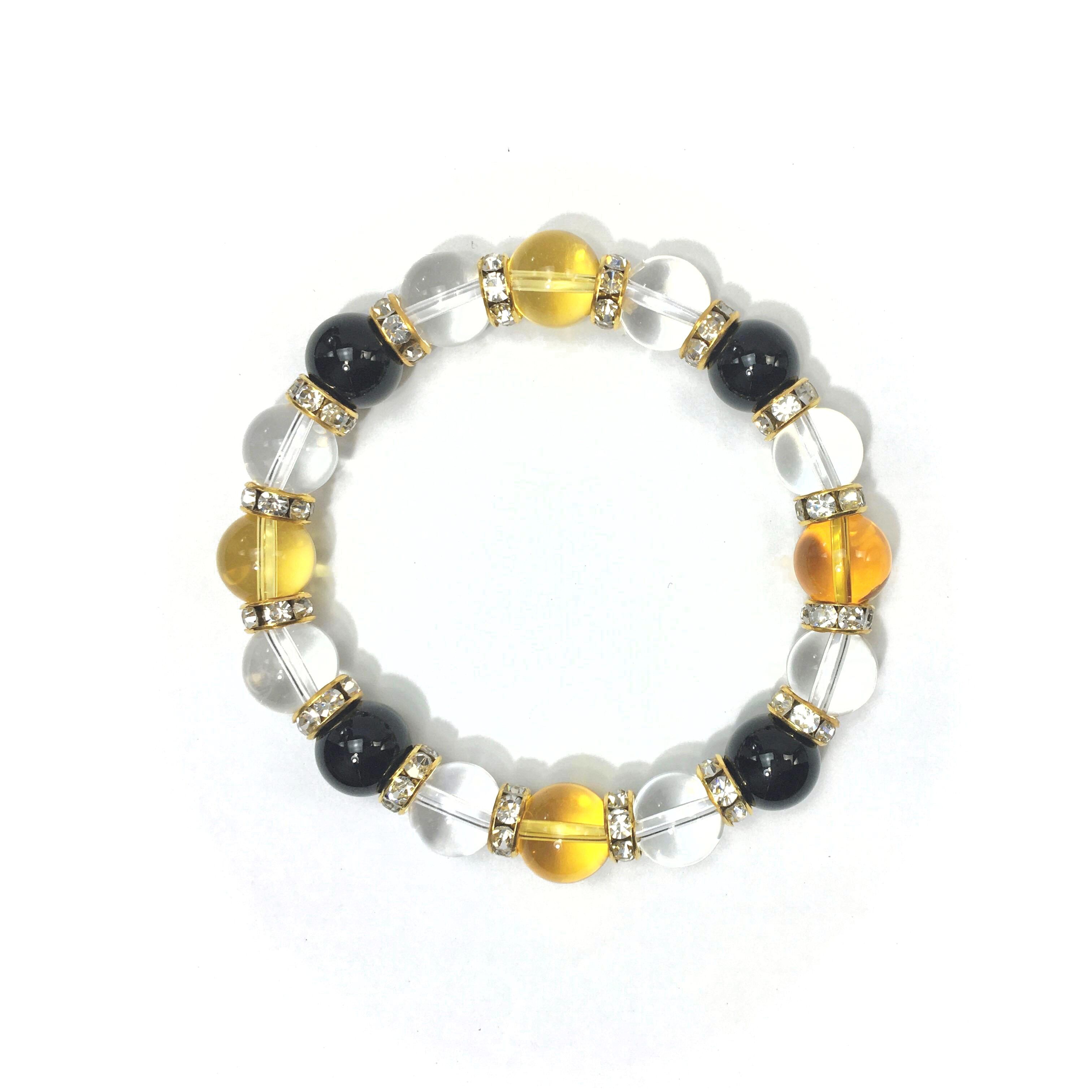 シトリン×水晶×オニキス パワーストーン ブレスレット10mm(ゴールド)メンズ・レディース 男性・女性 数珠ブレス 開運 ☆