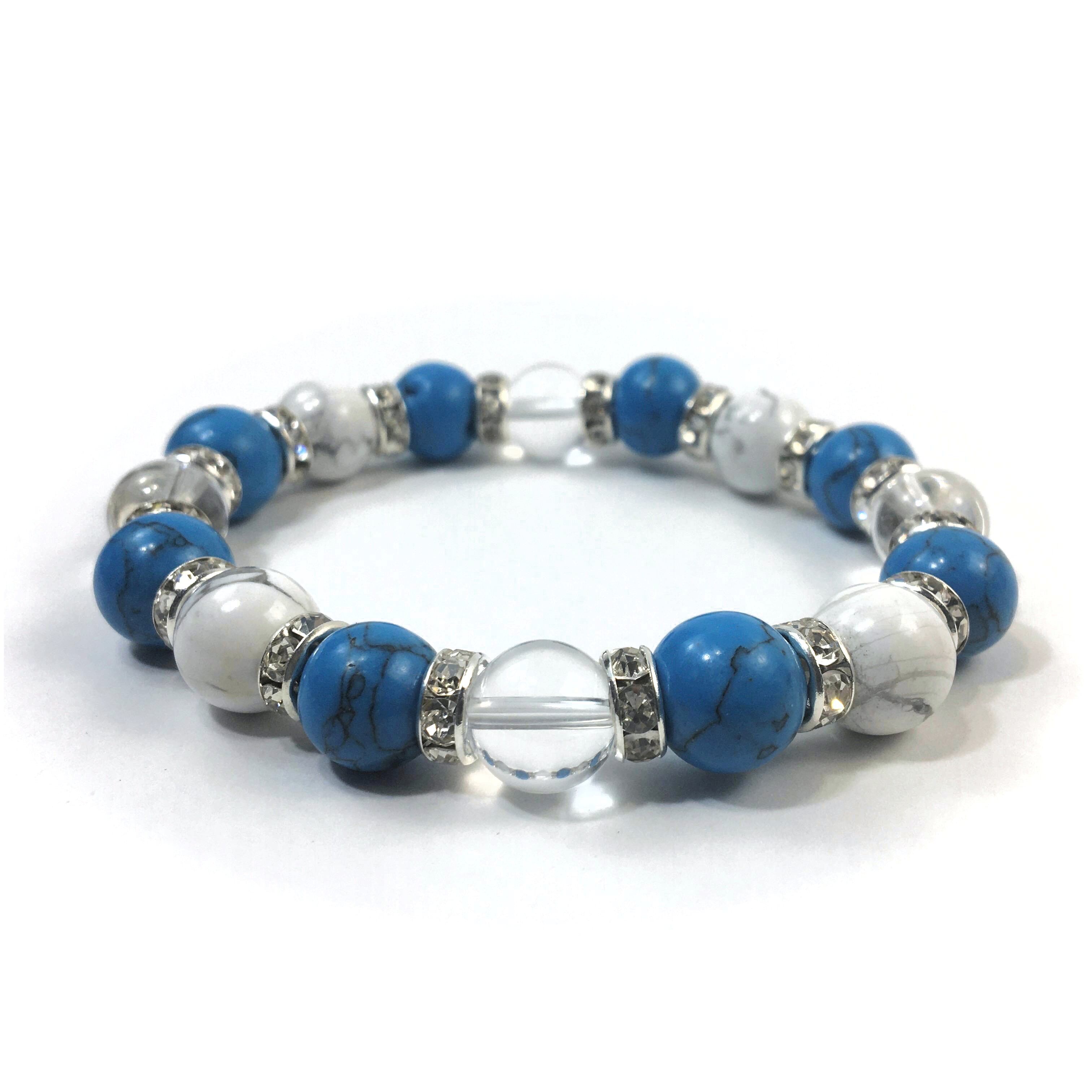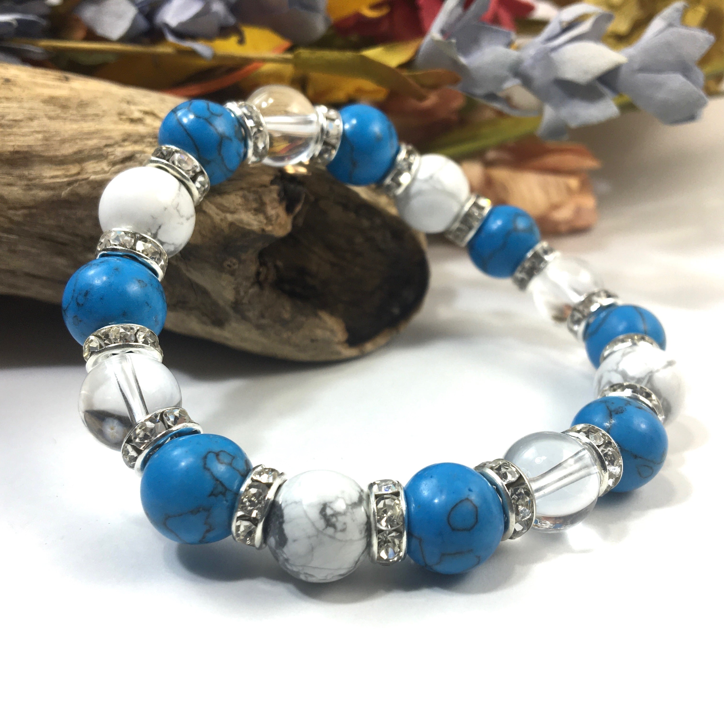 水晶×ハウライト×ターコイズ パワーストーンブレス 10mm(シルバー)メンズ・レディース 男性・女性 数珠ブレス 開運 ☆