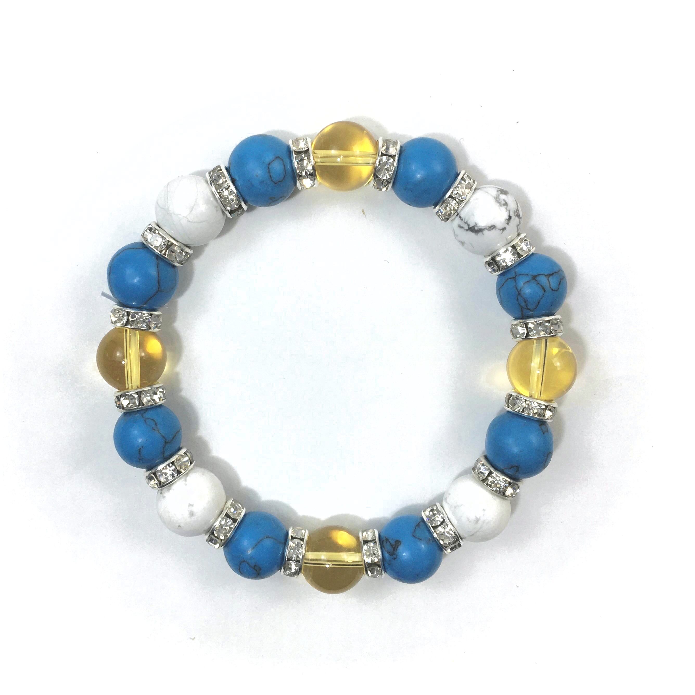 シトリン×ハウライト×ターコイズ パワーストーンブレス 10mm(シルバー)メンズ・レディース 男性・女性 数珠ブレス 開運 ☆