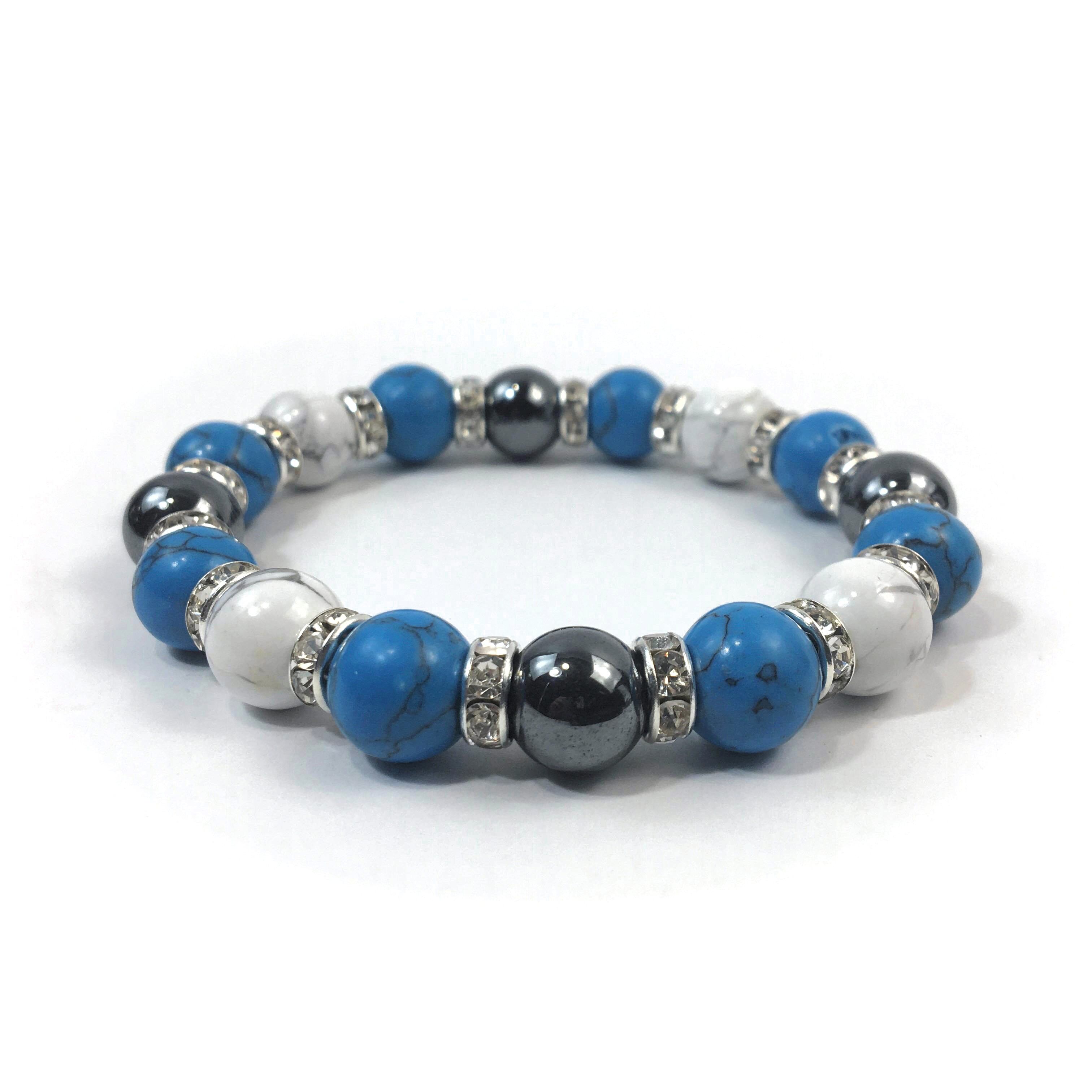 ヘマタイト×ハウライト×ターコイズ パワーストーンブレス 10mm(シルバー)メンズ・レディース 男性・女性 数珠ブレス 開運 ☆
