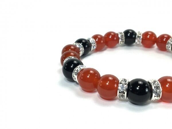 赤瑪瑙×オニキス パワーストーン ブレスレット 天然石 10mm(シルバー)メンズ・レディース 男性・女性 数珠ブレス 開運 ☆