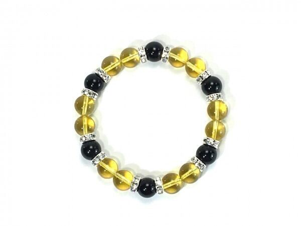 こちらは、シトリンとオニキスを組み合わせたブレスレットです。間にはロンデルを挟み高級感あるデザインに仕上がっています。石大きさは腕にも馴染みやすいように10mm玉で内周約17cm(伸可能)です。数に限りがございますので気になる方はお早めにどうぞ。