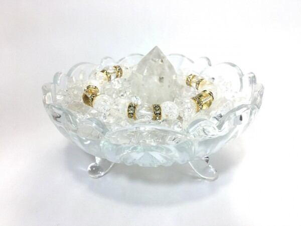 クラック水晶は、水晶の内部が重力によって破裂した後、さらに圧力が加わり奇跡的に再結晶したものです。中国では古来、邪気払い・開運の石として長く重宝されつづけてきました。クラック水晶が持つ力のひとつに、体内に潜む邪気を外へ吐き出す働きがございます。持ち主の邪気を吸収するたびにクラック(亀裂)消えていくとも言われており、実際に身に着けているうちにクラックが消え、最終的に普通の水晶になったとの報告もあるそうです。