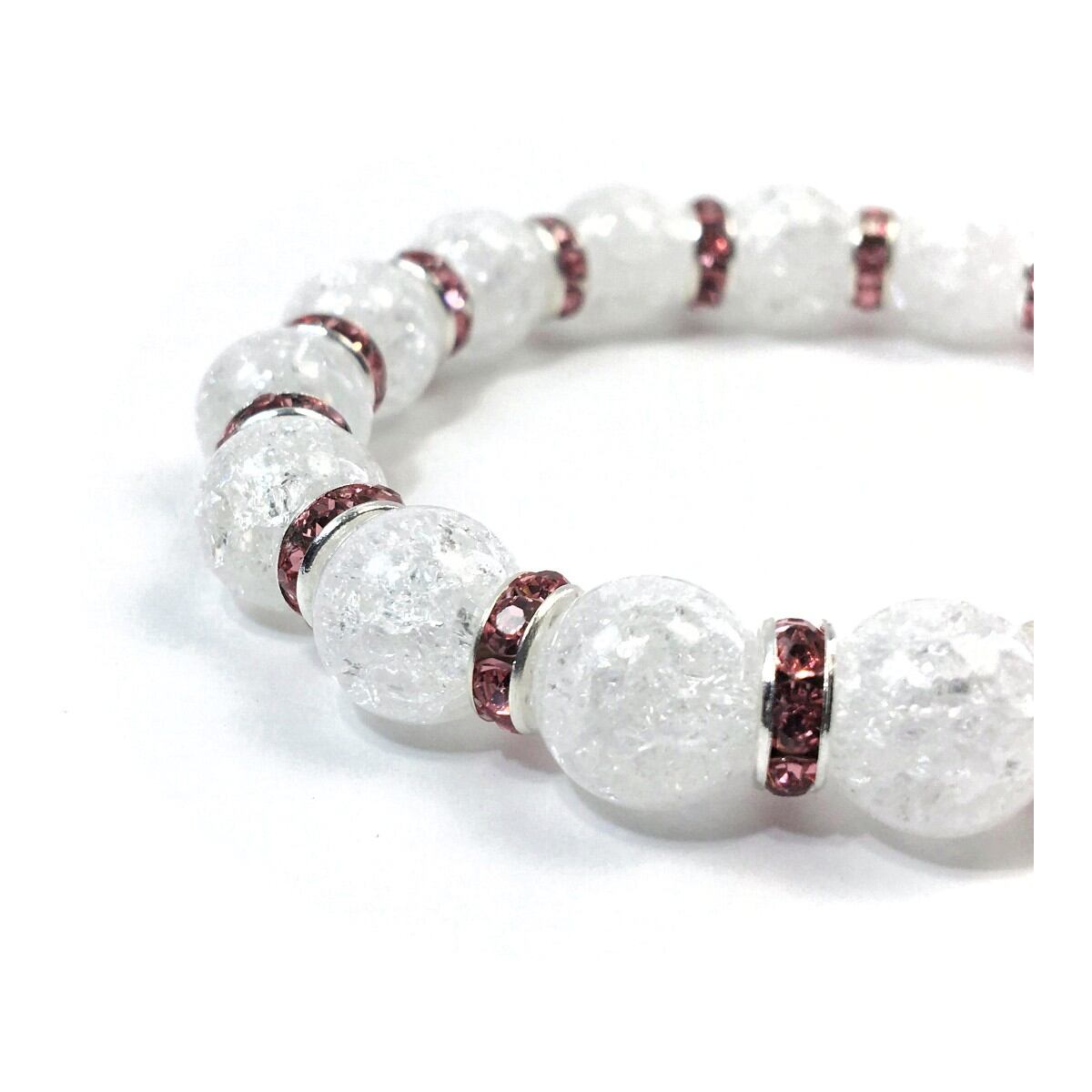 クラック水晶 パワーストーン ブレスレット 天然石 10mm (ピンク)メンズ・レディース 男性・女性 数珠ブレス 開運 ☆