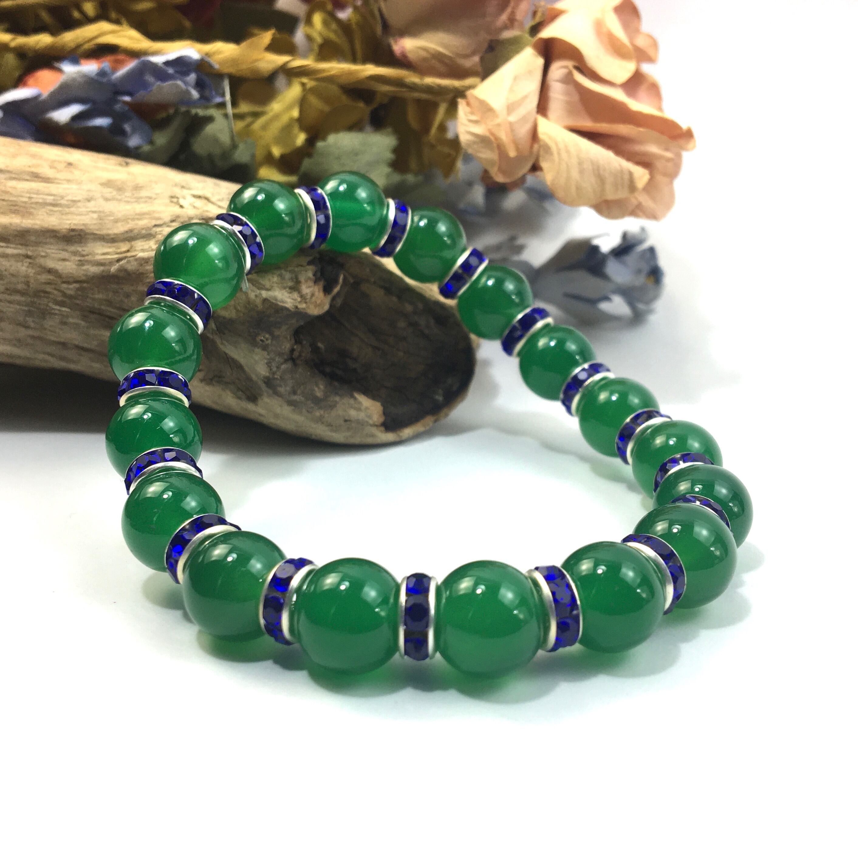 緑瑪瑙 パワーストーン ブレスレット 天然石 10mm (ダークブルー)メンズ・レディース 男性・女性 数珠ブレス  開運 ☆