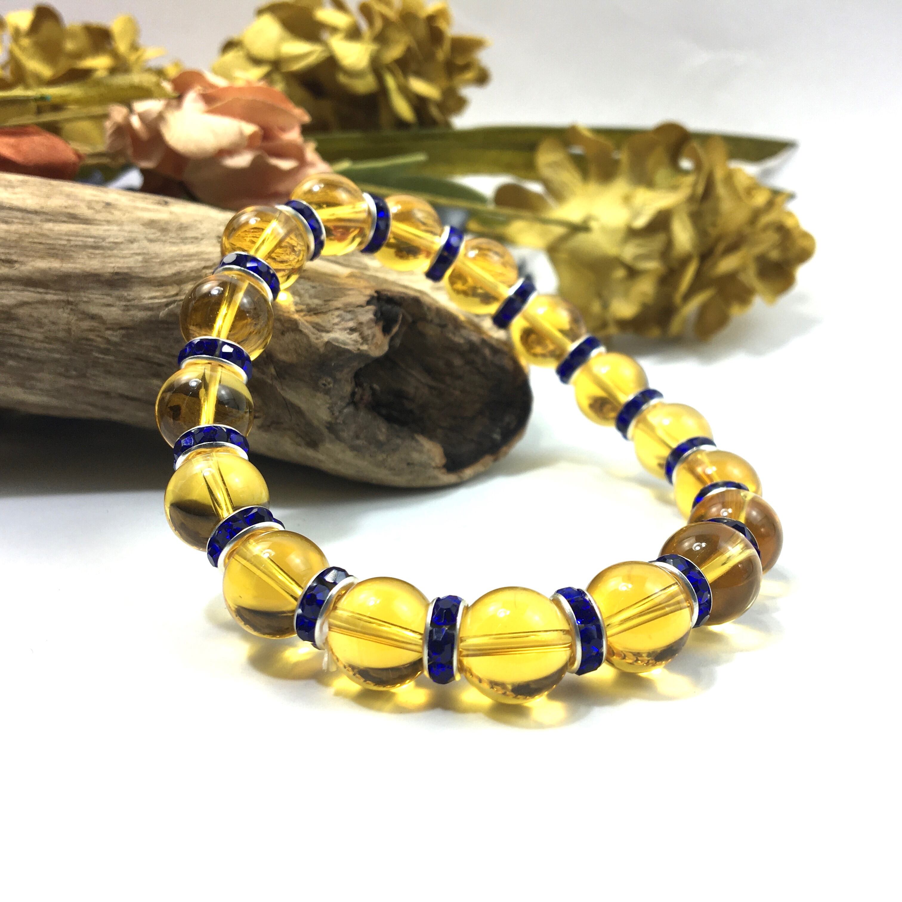 シトリン パワーストーン ブレスレット 10mm (ダークブルー)メンズ・レディース 男性・女性 数珠ブレス  開運 ☆