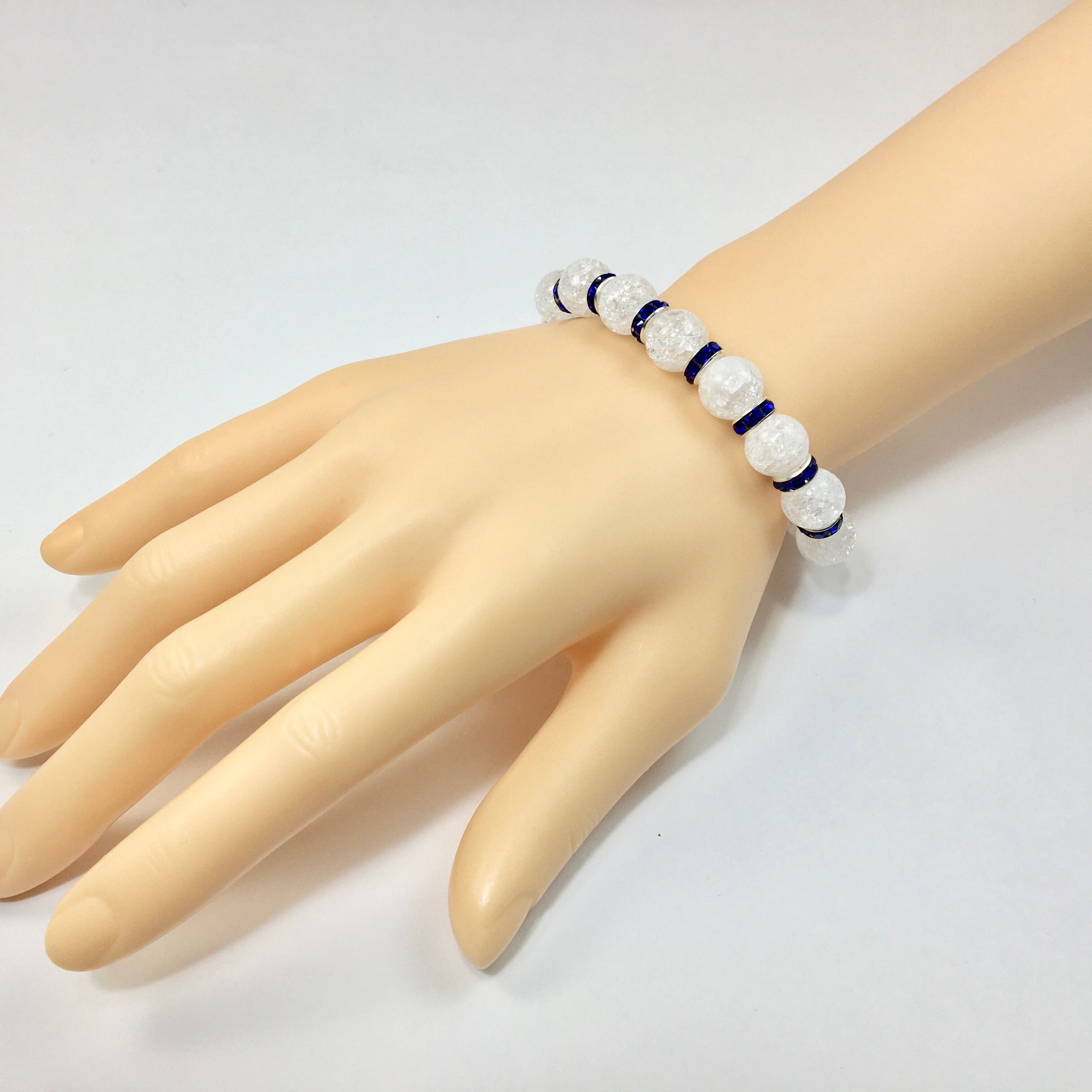 クラック水晶 パワーストーン ブレスレット 天然石 10mm (ダークブルー)メンズ・レディース 男性・女性 数珠ブレス  開運 ☆