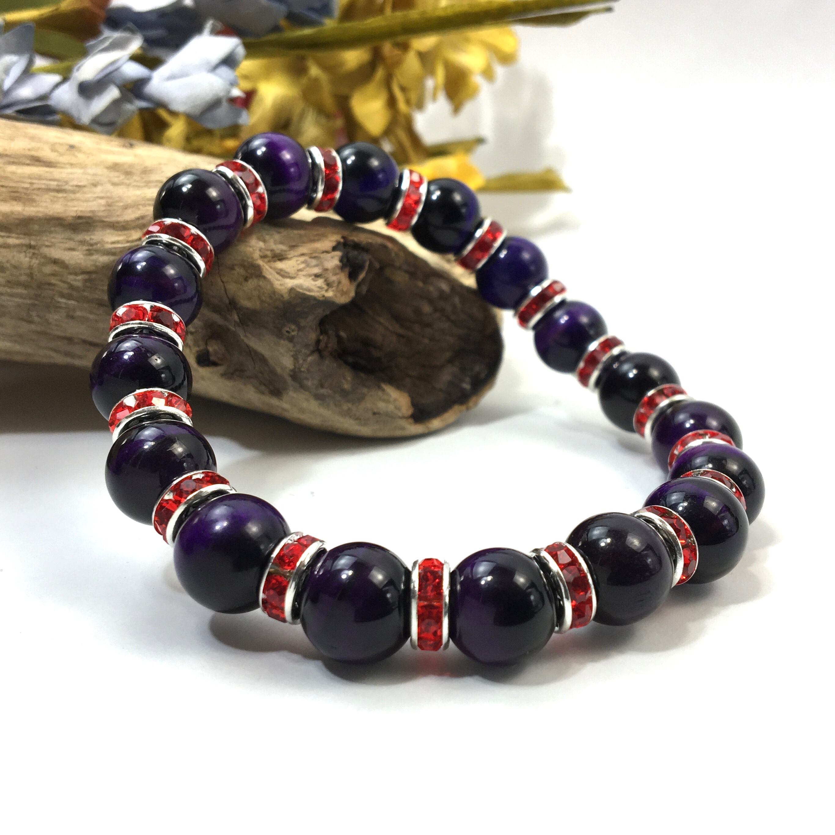 パープルタイガーアイ パワーストーン ブレスレット 10mm (レッド)メンズ・レディース 男性・女性 数珠ブレス 開運 ☆