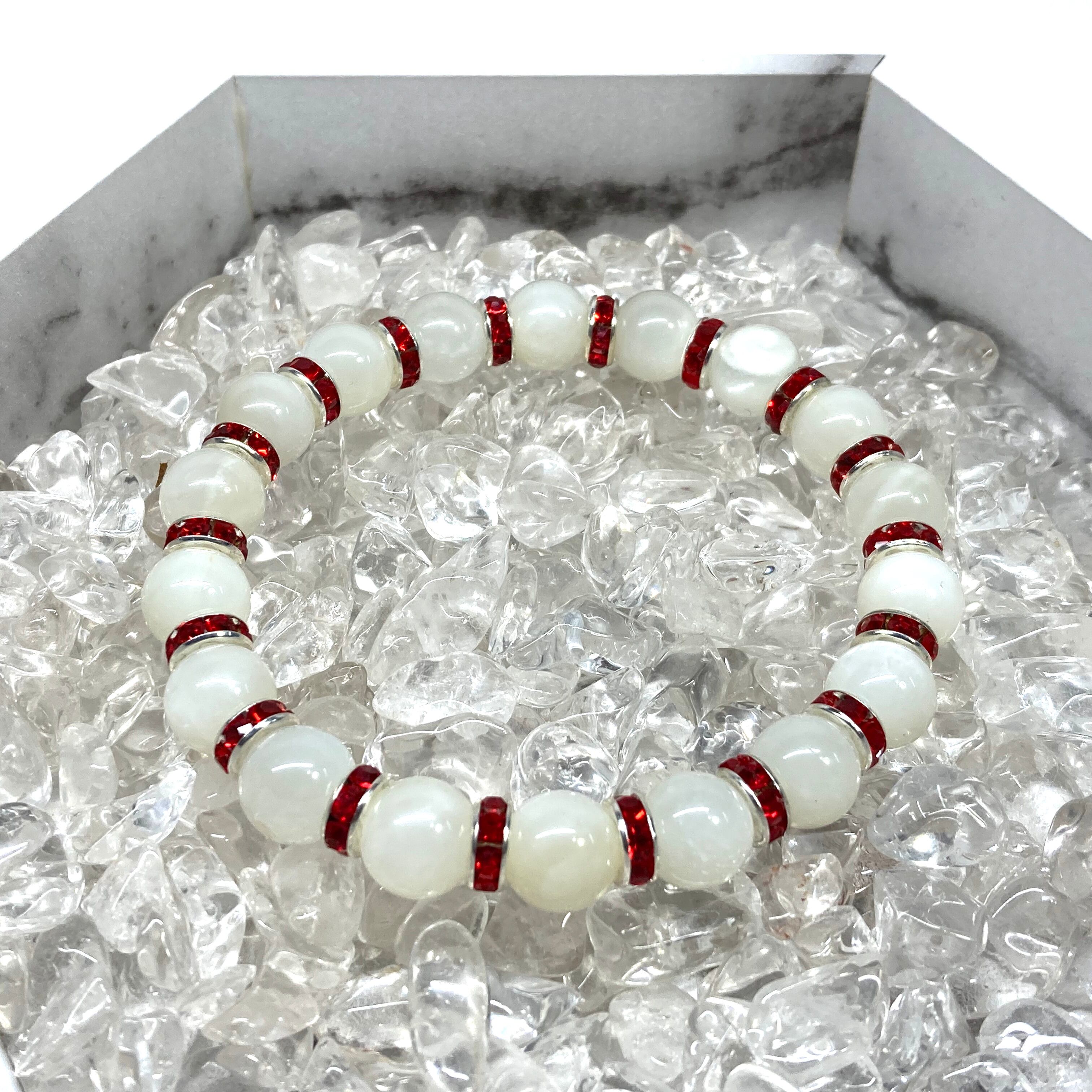 ムーンストーン パワーストーン ブレスレット 10mm 天然石 10mm (レッド)メンズ・レディース 男性・女性 数珠ブレス  開運 ☆