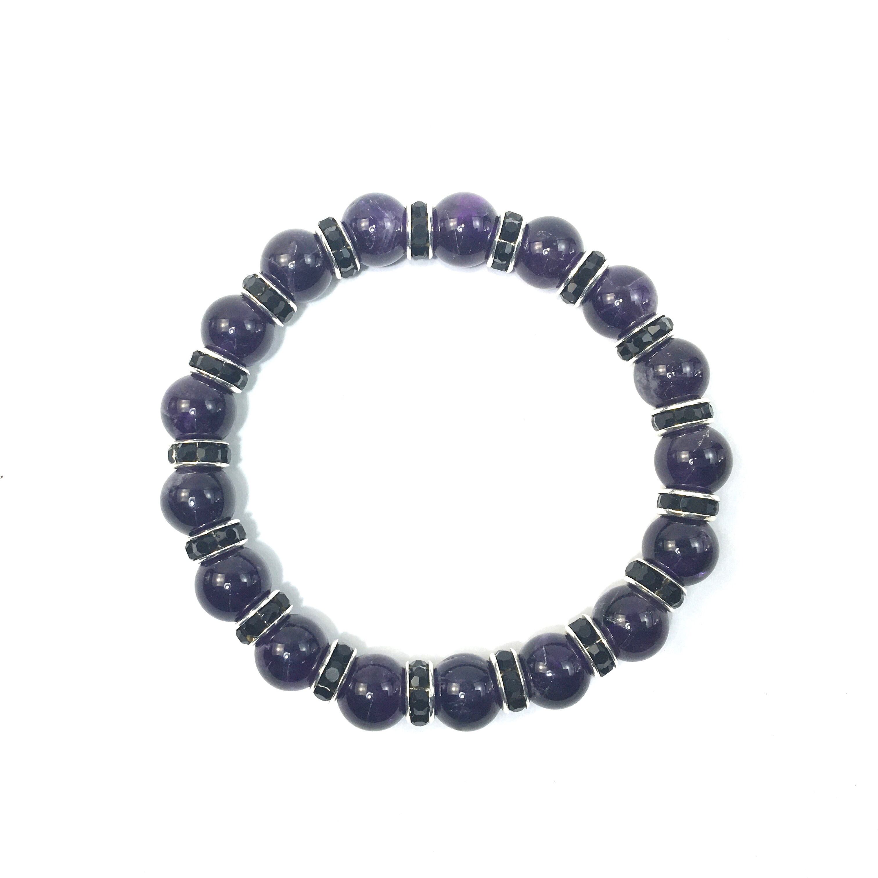 アメジスト パワーストーン ブレスレット 天然石 10mm (ブラック)メンズ・レディース 男性・女性 数珠ブレス 開運 ☆