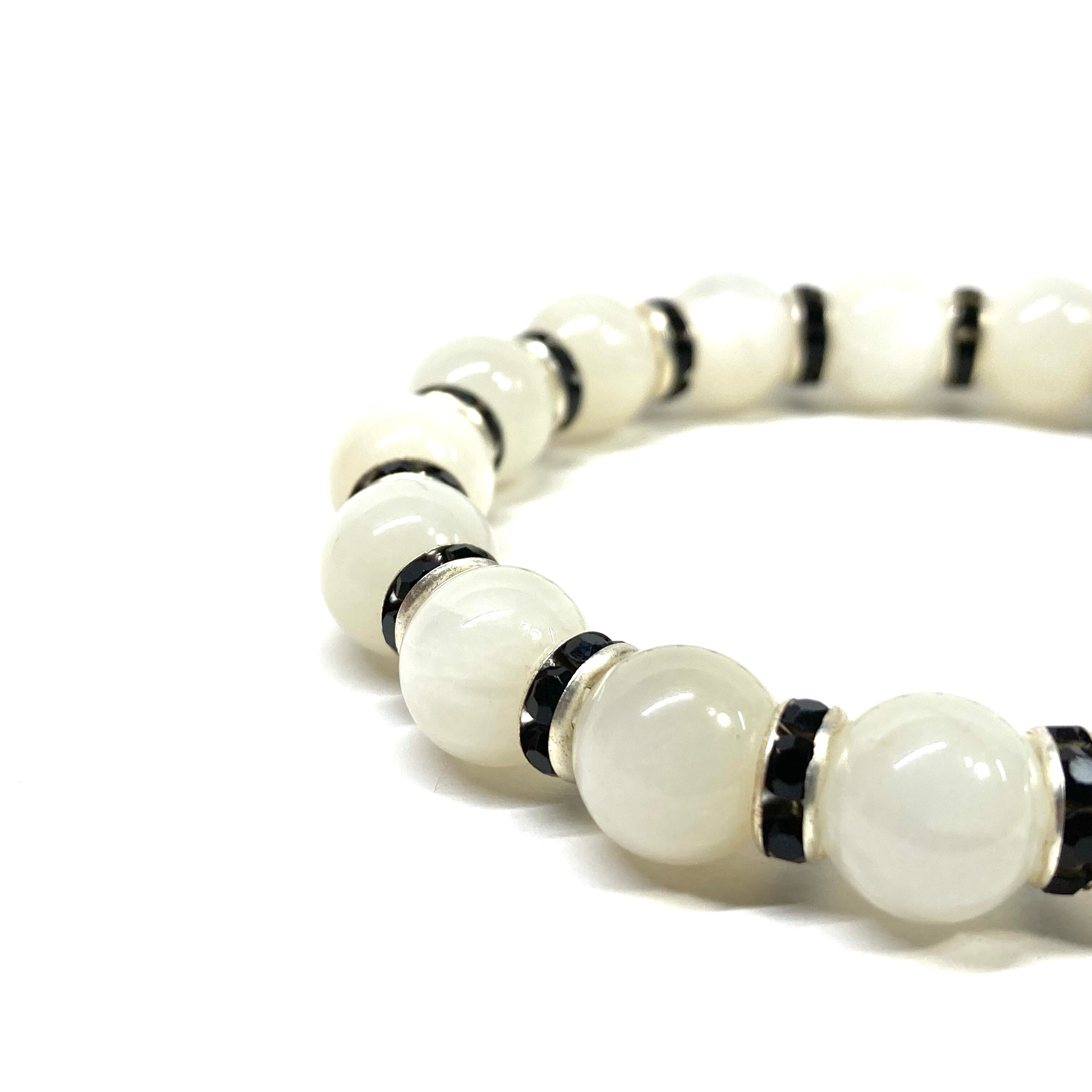 ムーンストーン パワーストーン ブレスレット 10mm 天然石 10mm (ブラック)メンズ・レディース 男性・女性 数珠ブレス 開運 ☆