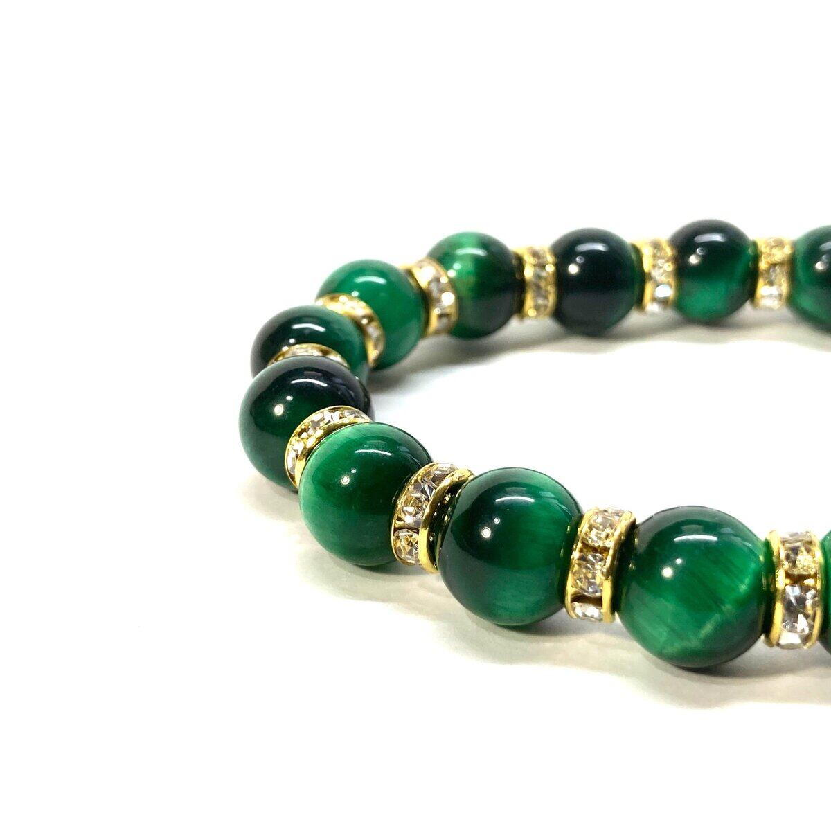 グリーンタイガーアイ パワーストーン ブレスレット 10mm (ゴールド)メンズ・レディース 男性・女性 数珠ブレス  開運 ☆
