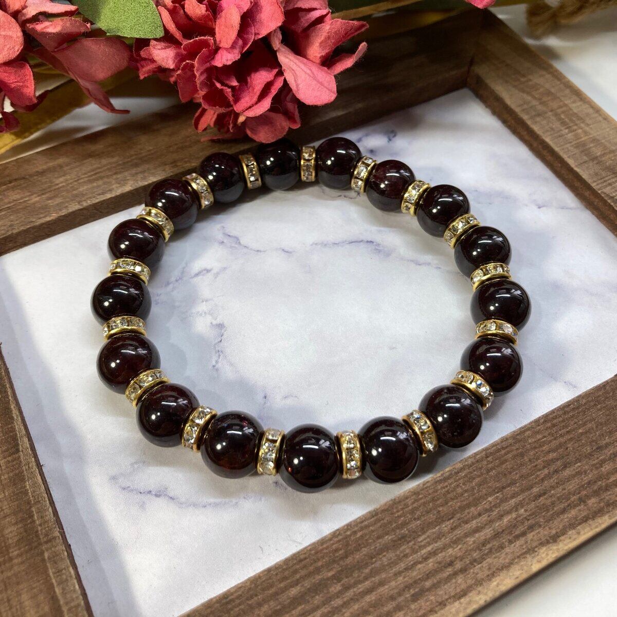 ガーネット パワーストーン ブレスレット 天然石 10mm (ゴールド)メンズ・レディース 男性・女性 数珠ブレス  開運 ☆