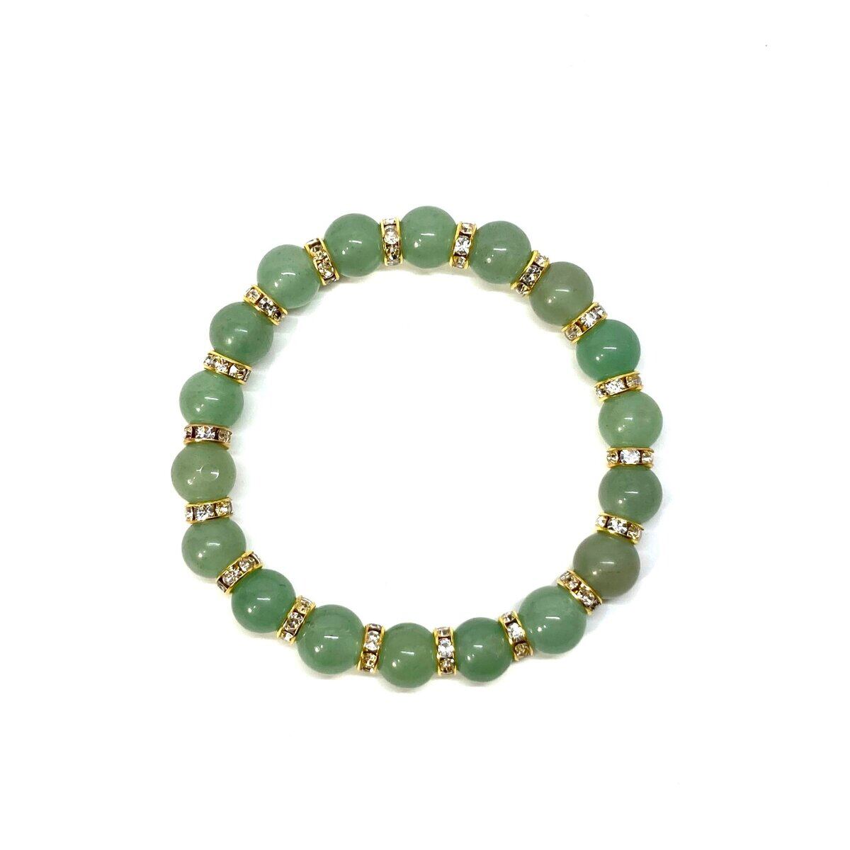 こちらは、アベンチュリンの10mm玉を使用したパワーストーンブレスレットです。石との間にはロンデルを挟み高級感を演出しております。シンプルなデザインは、シーン問わずどんなコーディネートとも合わせ易いブレスレットです。サイズは種類を選択からお選びください。(内周約14cm?内周約22cmでお選び頂けます)当社の中でも一番人気の実績があるデザインとなっております。気になる方はお早めにどうぞ。