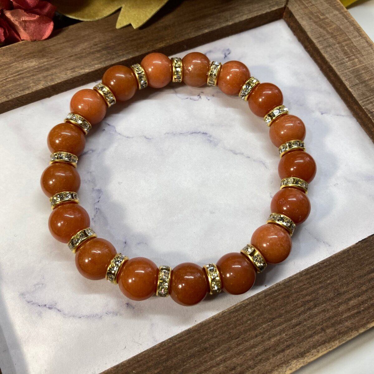 レッドアベンチュリン パワーストーン ブレスレット 10mm (ゴールド)メンズ・レディース 男性・女性 数珠ブレス  開運 ☆
