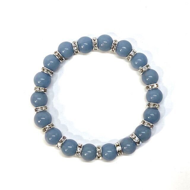 こちらは、エンジェライトの10mm玉を使用したパワーストーンブレスレットです。石との間にはロンデルを挟み高級感を演出しております。シンプルなデザインは、シーン問わずどんなコーディネートとも合わせ易いブレスレットです。サイズは種類を選択からお選びください。(内周約14cm?内周約22cmでお選び頂けます)当社の中でも一番人気の実績があるデザインとなっております。気になる方はお早めにどうぞ。